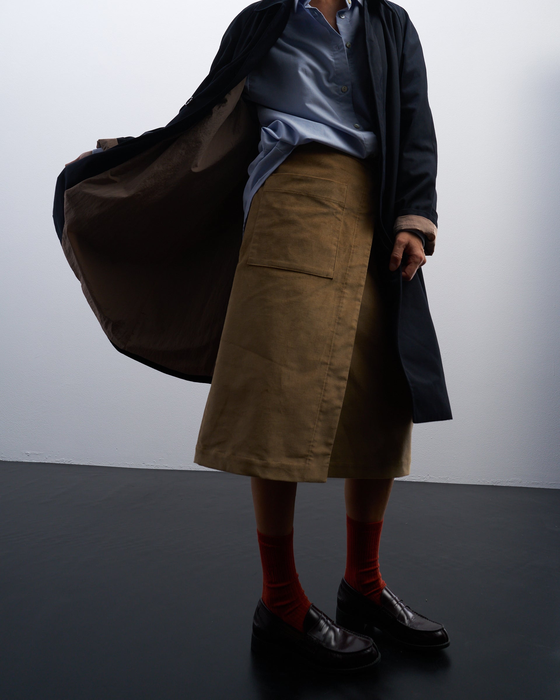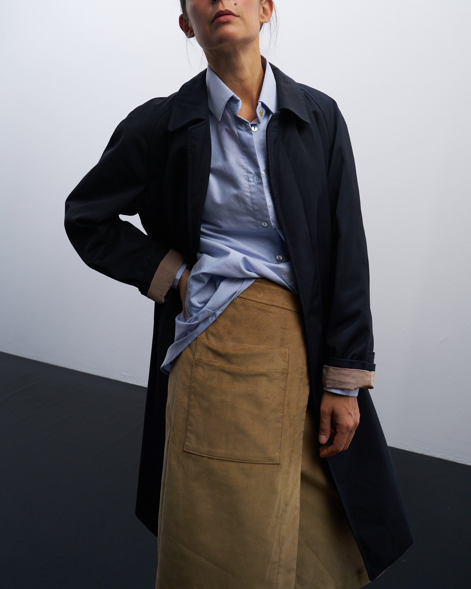 La nuova collezione nasce da tessuti che portano con sé memoria e valore, trasformati in capi essenziali e sofisticati.
