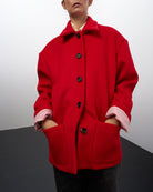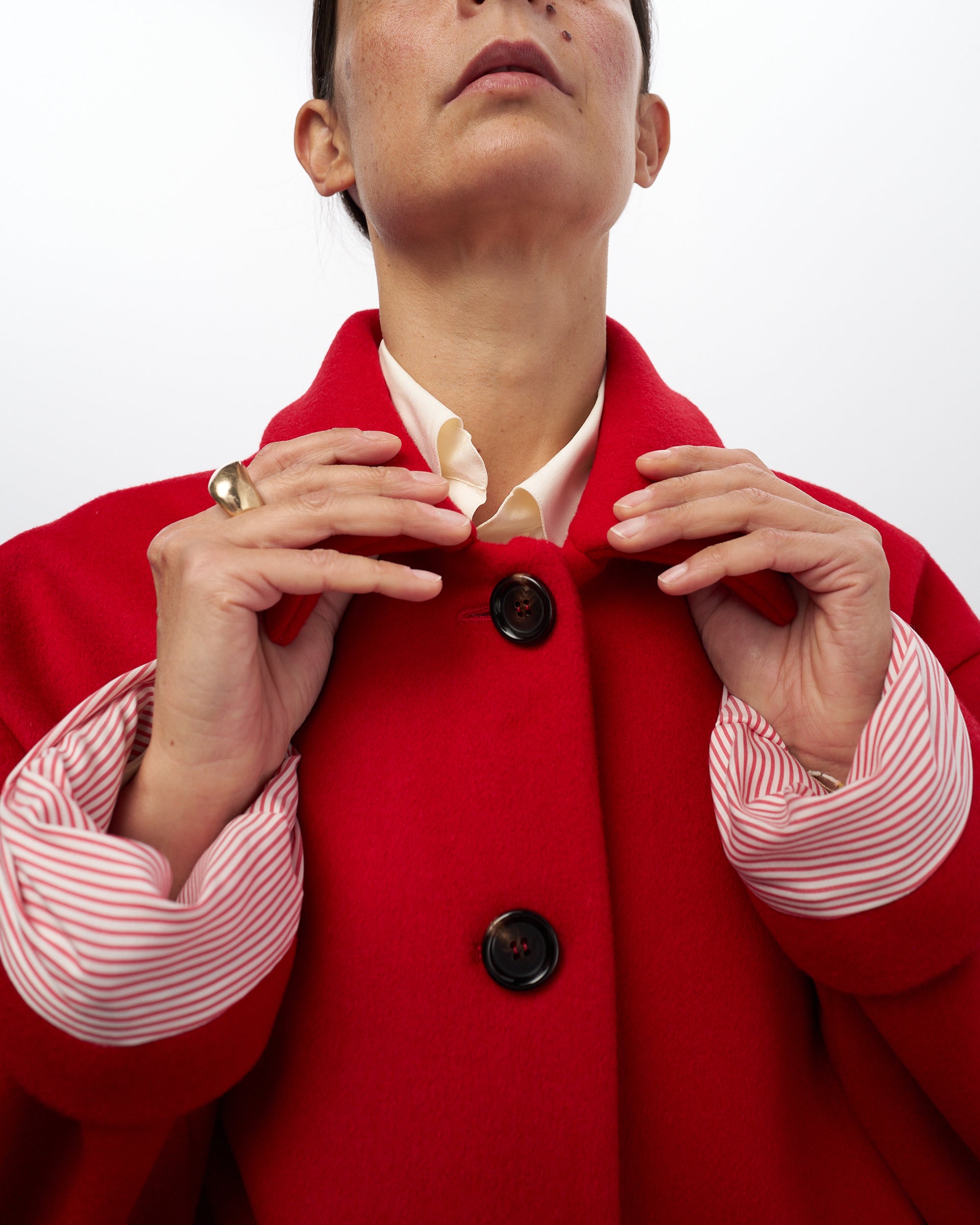 Allacciatura con bottoni sul davanti, due ampie tasche frontali, un colletto semplice, le maniche dritte e le fodere a contrasto in seta e viscosa, sono dettagli sartoriali che rendono questo giaccone super chic, ma adatto alla vita contemporanea.
