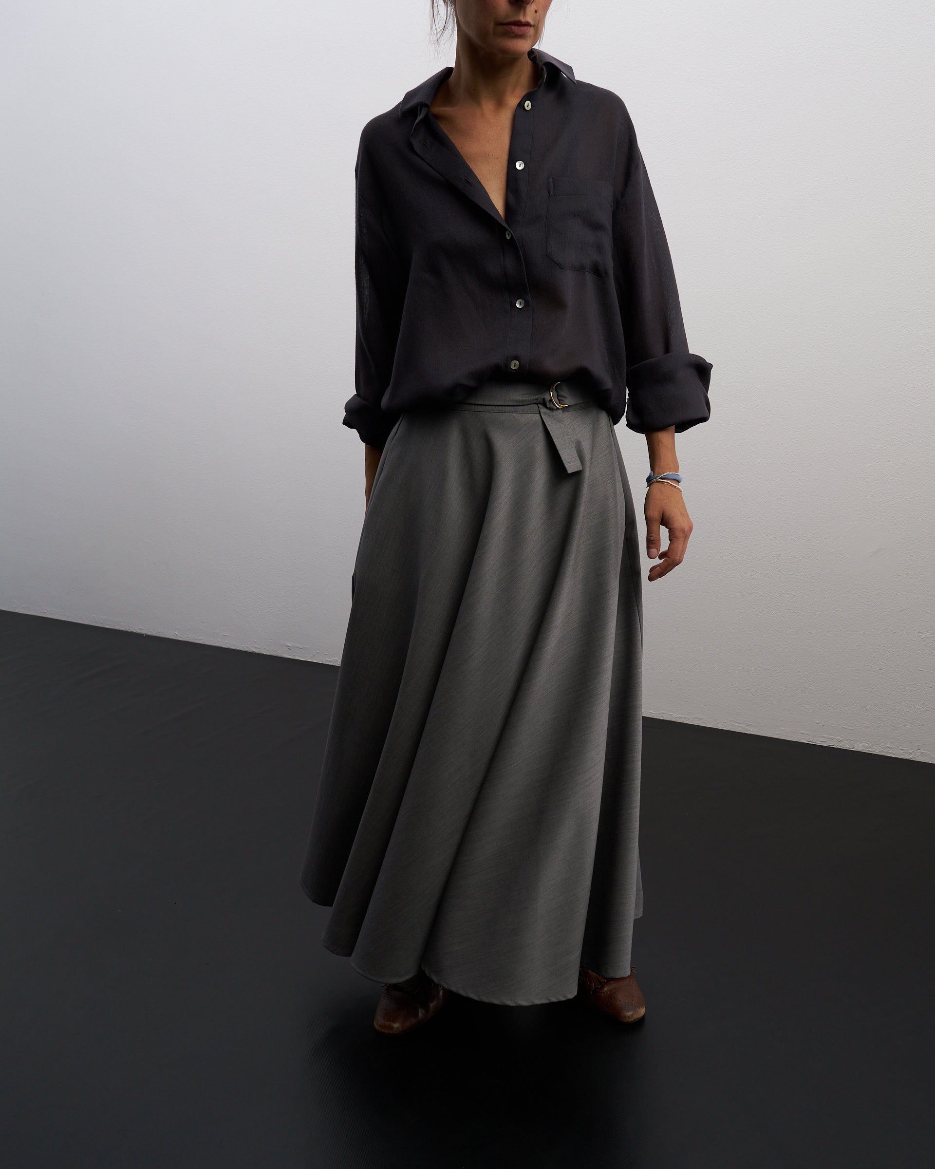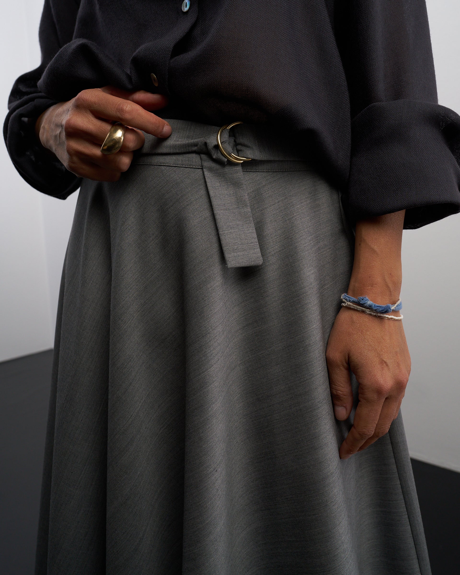 Una gonna a mezza ruota, fluida e leggera, realizzata in morbido fresco lana, ideale per cadere sul corpo in modo perfetto.