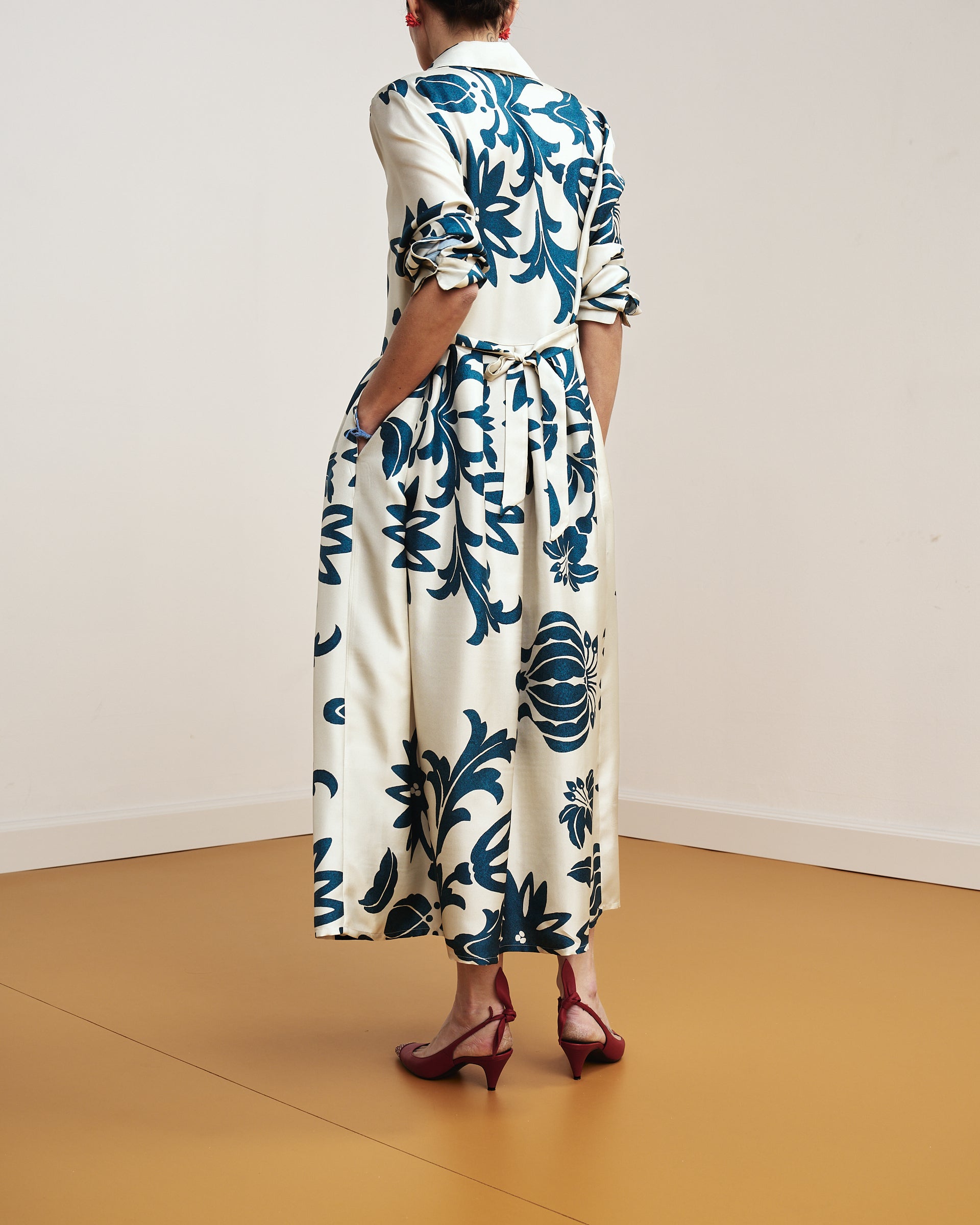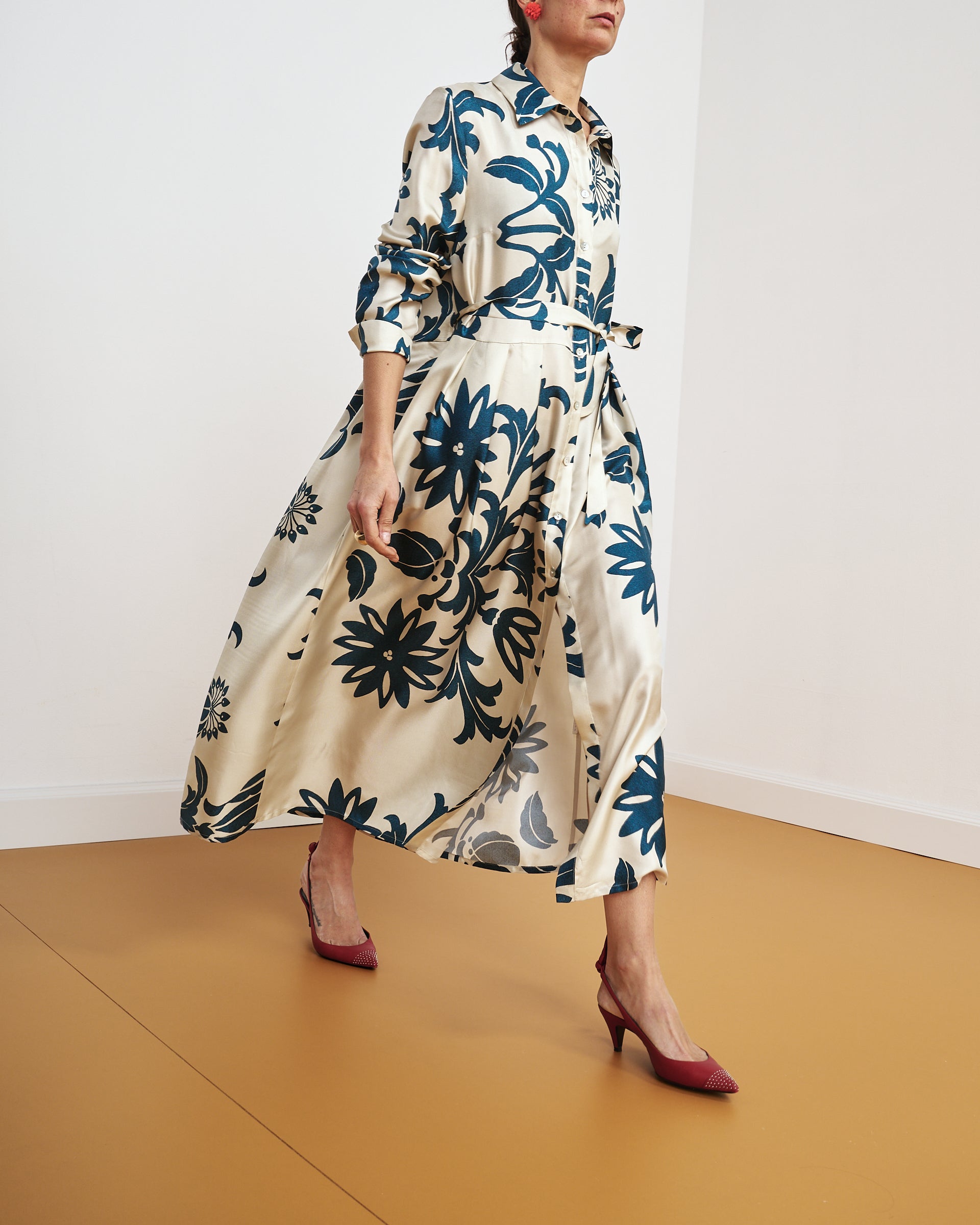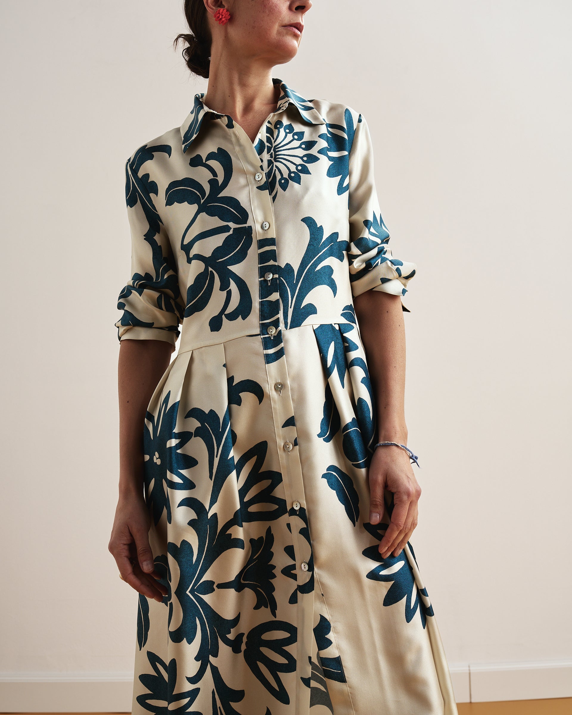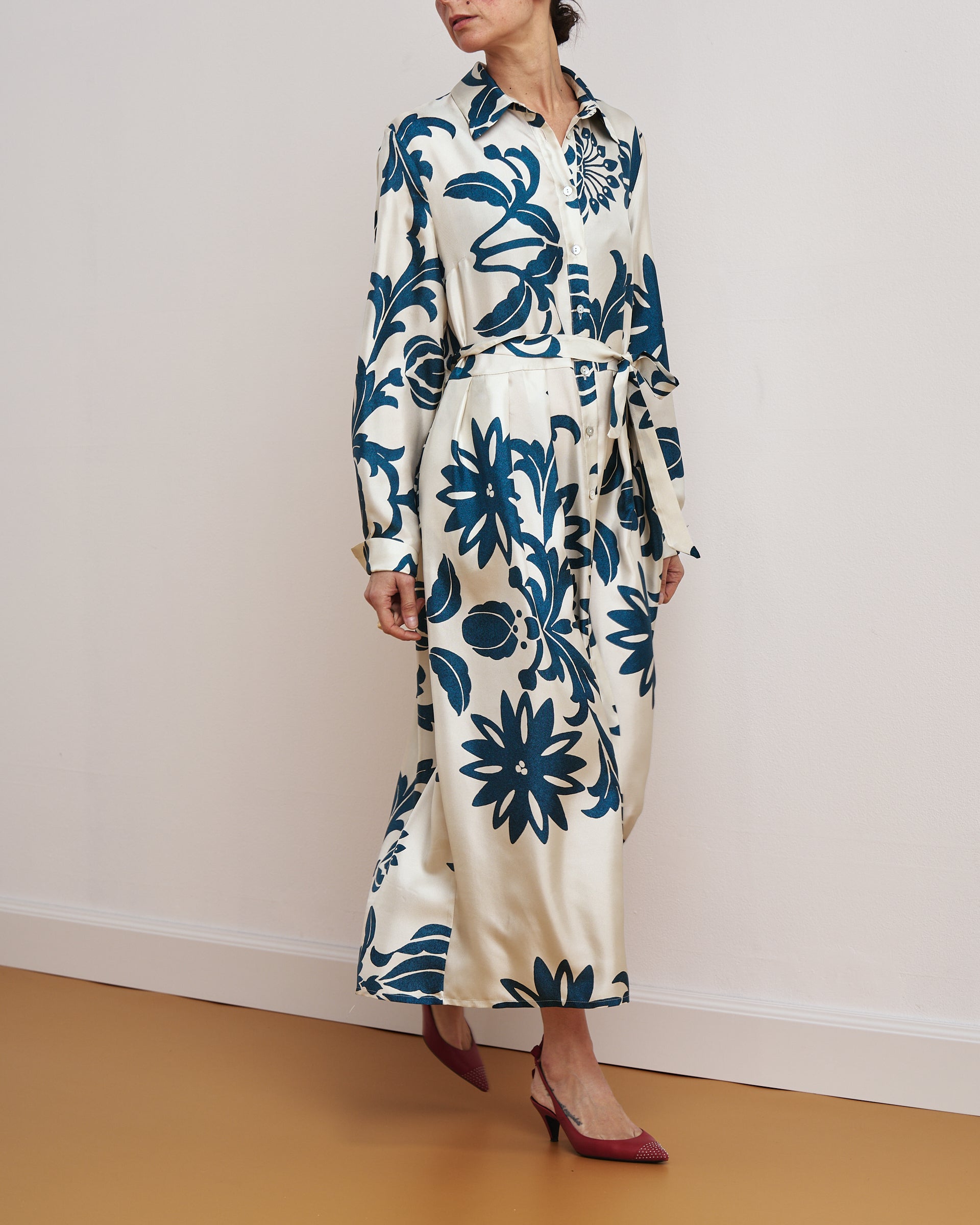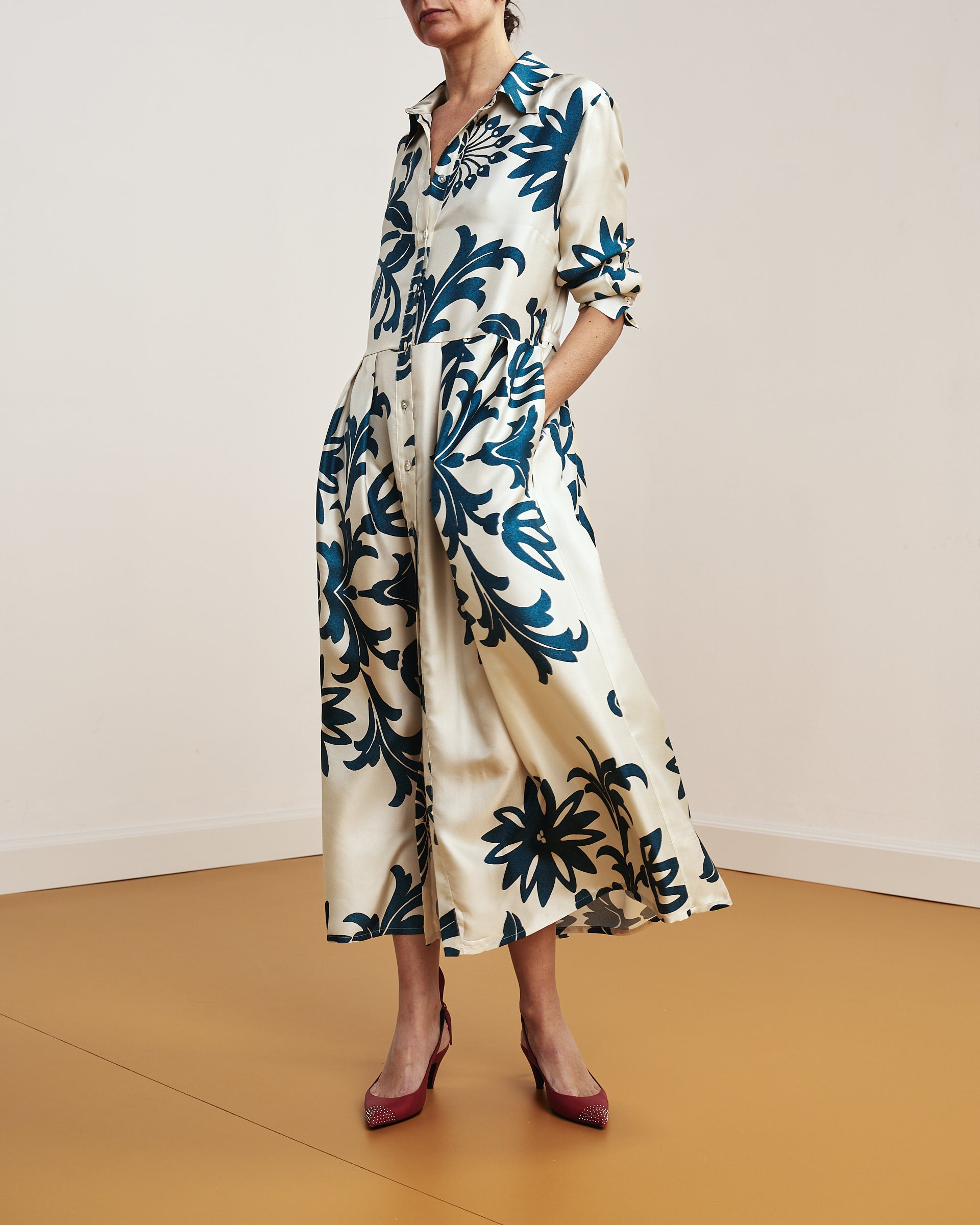 Abito Miz 26 | Seta Avorio Fiori Blu