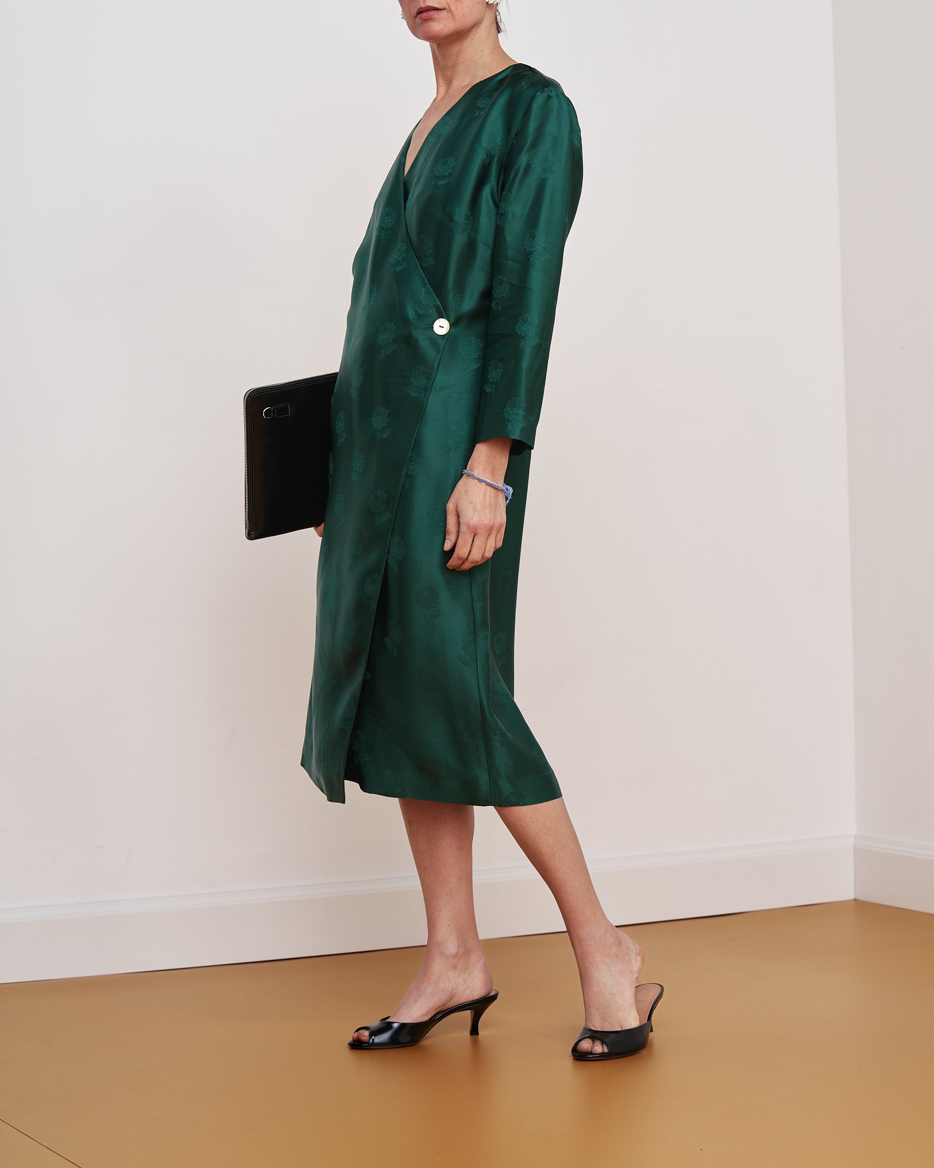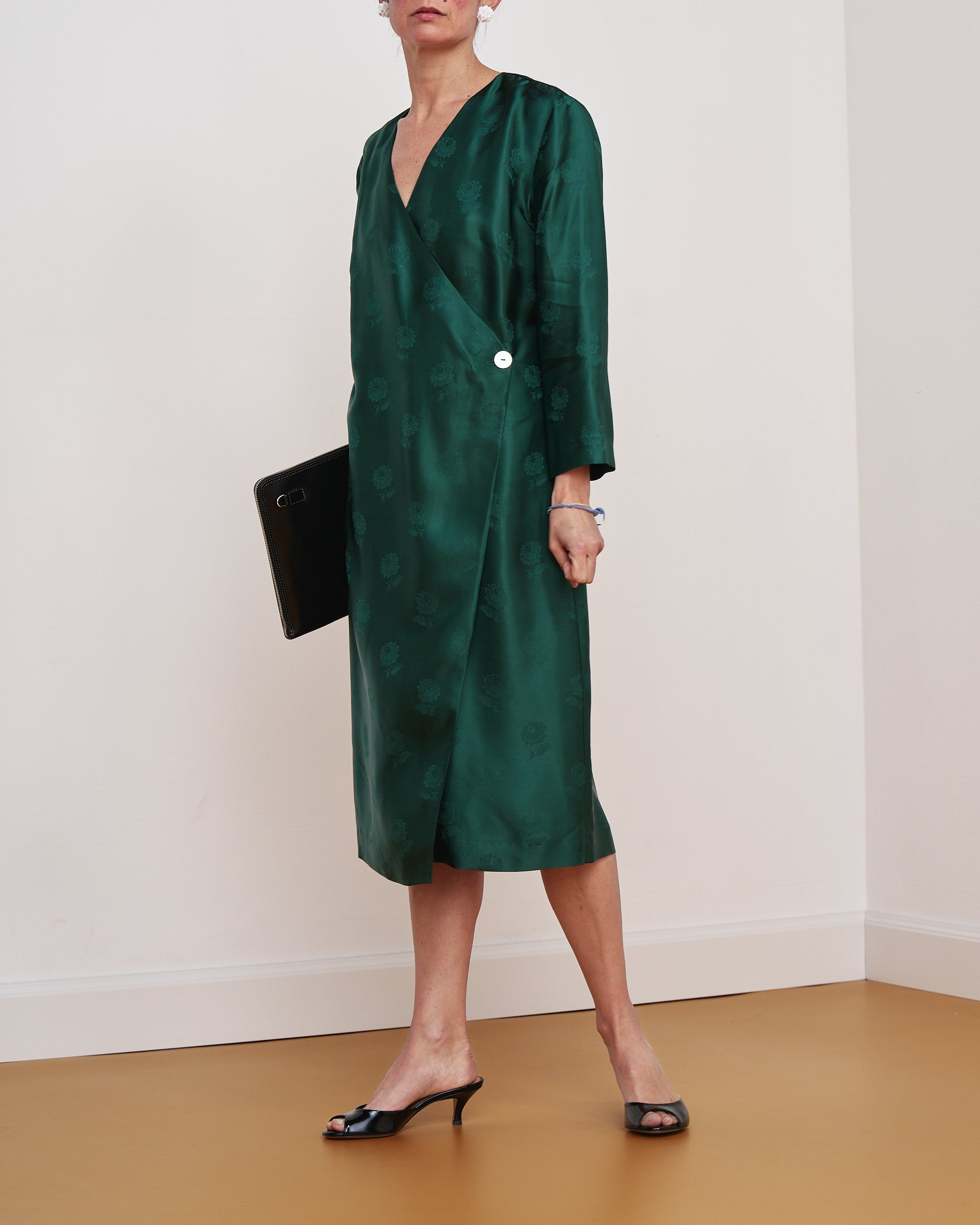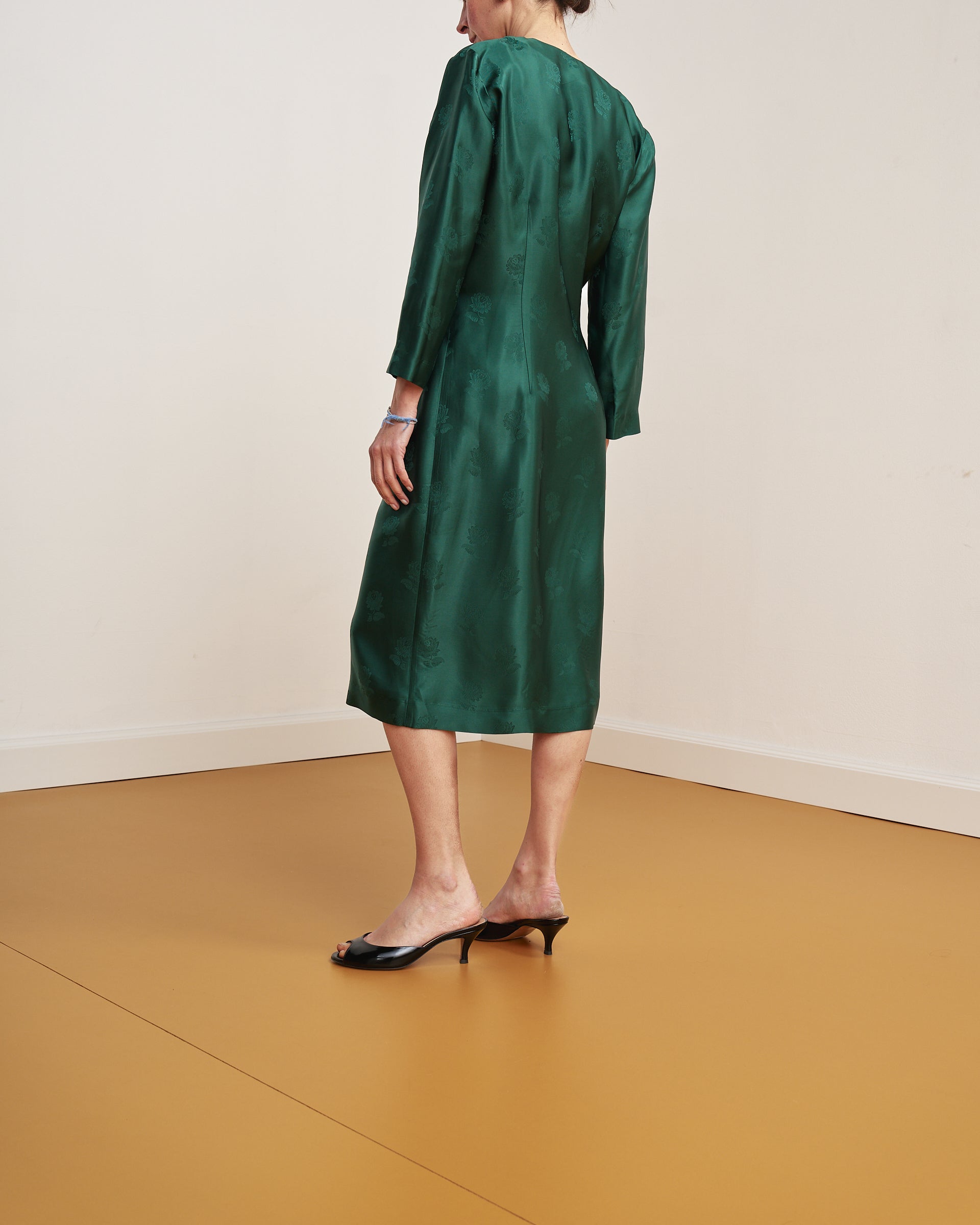 Abito Luisa | Fresco di Lana Principe di Galles Riga Verde