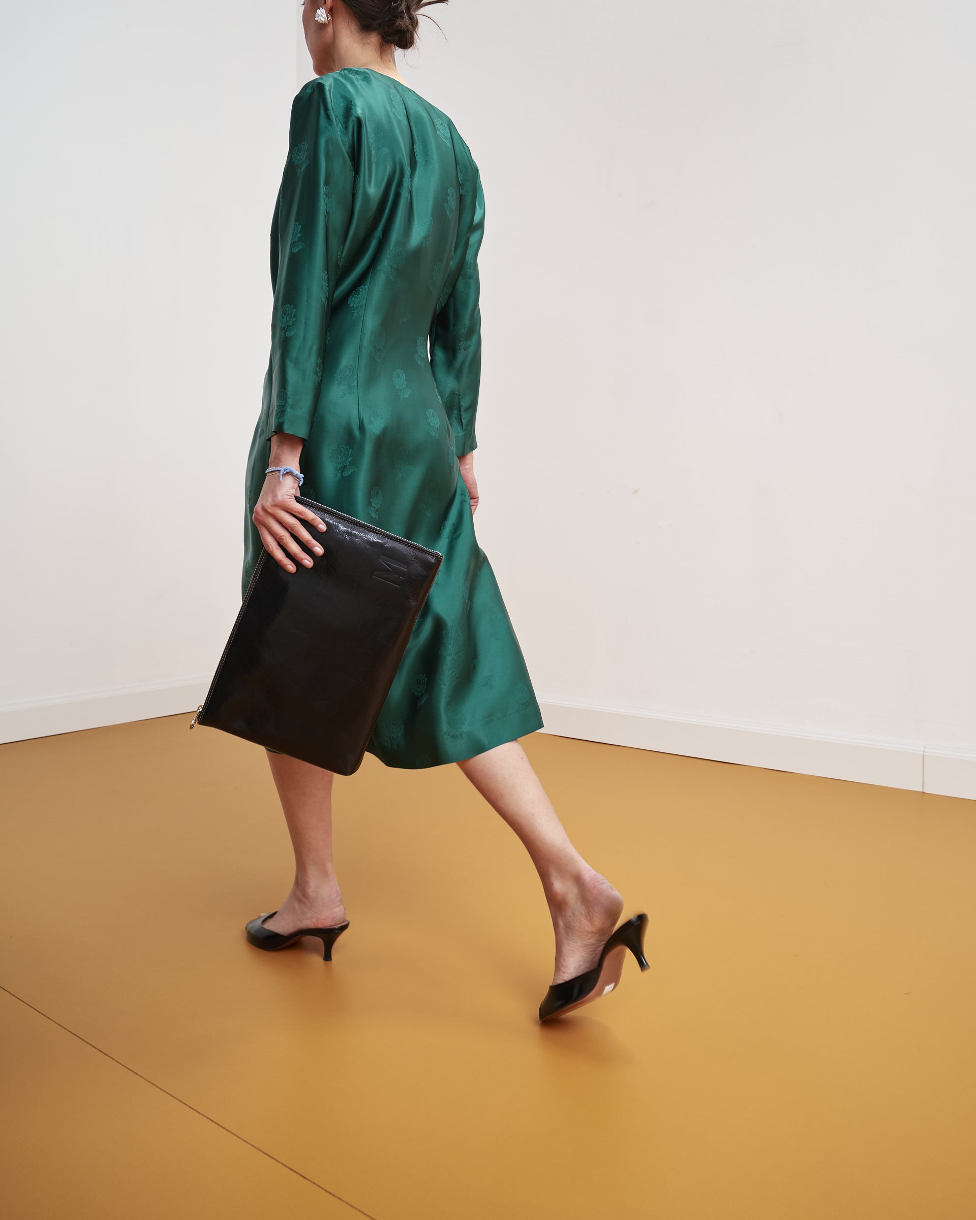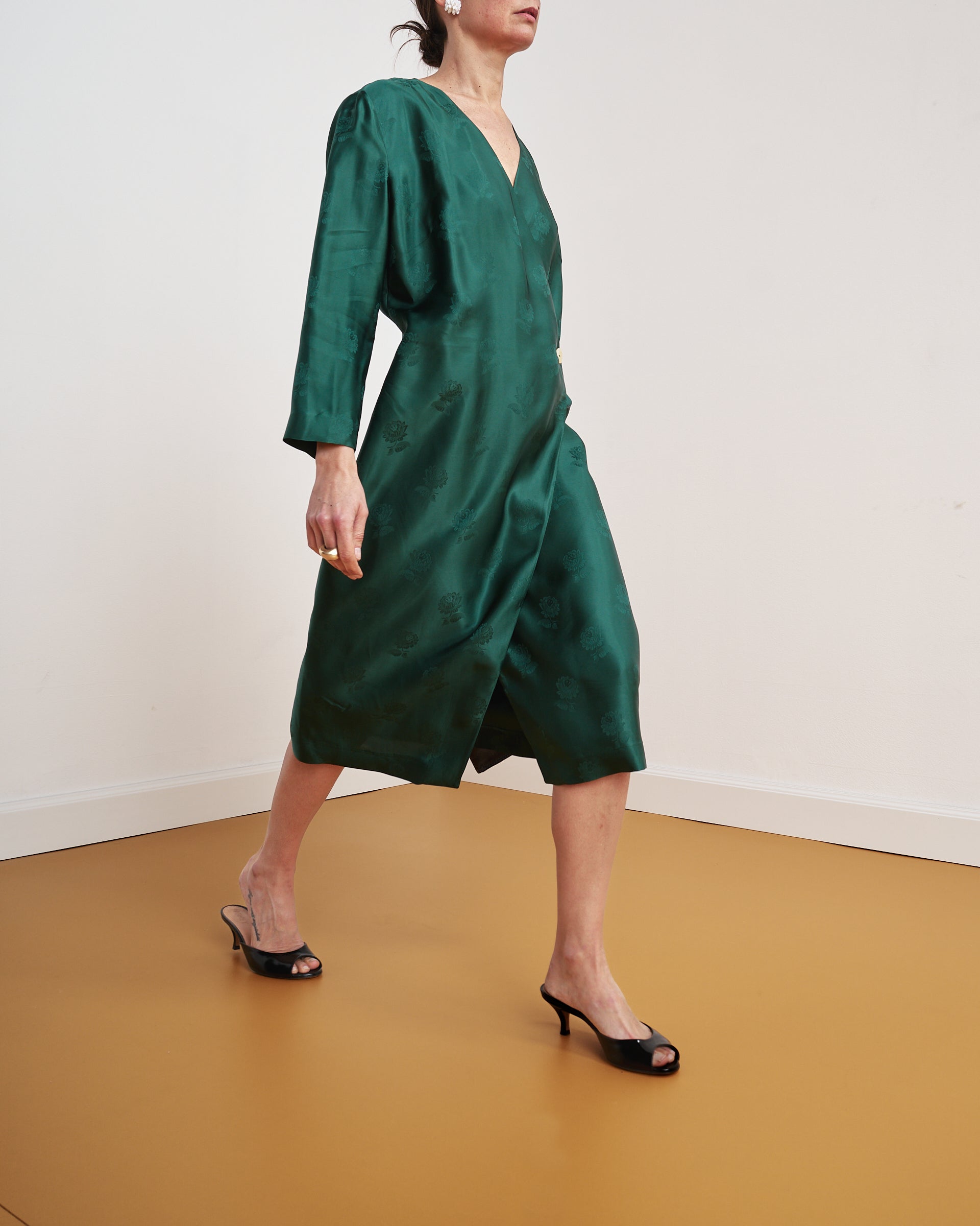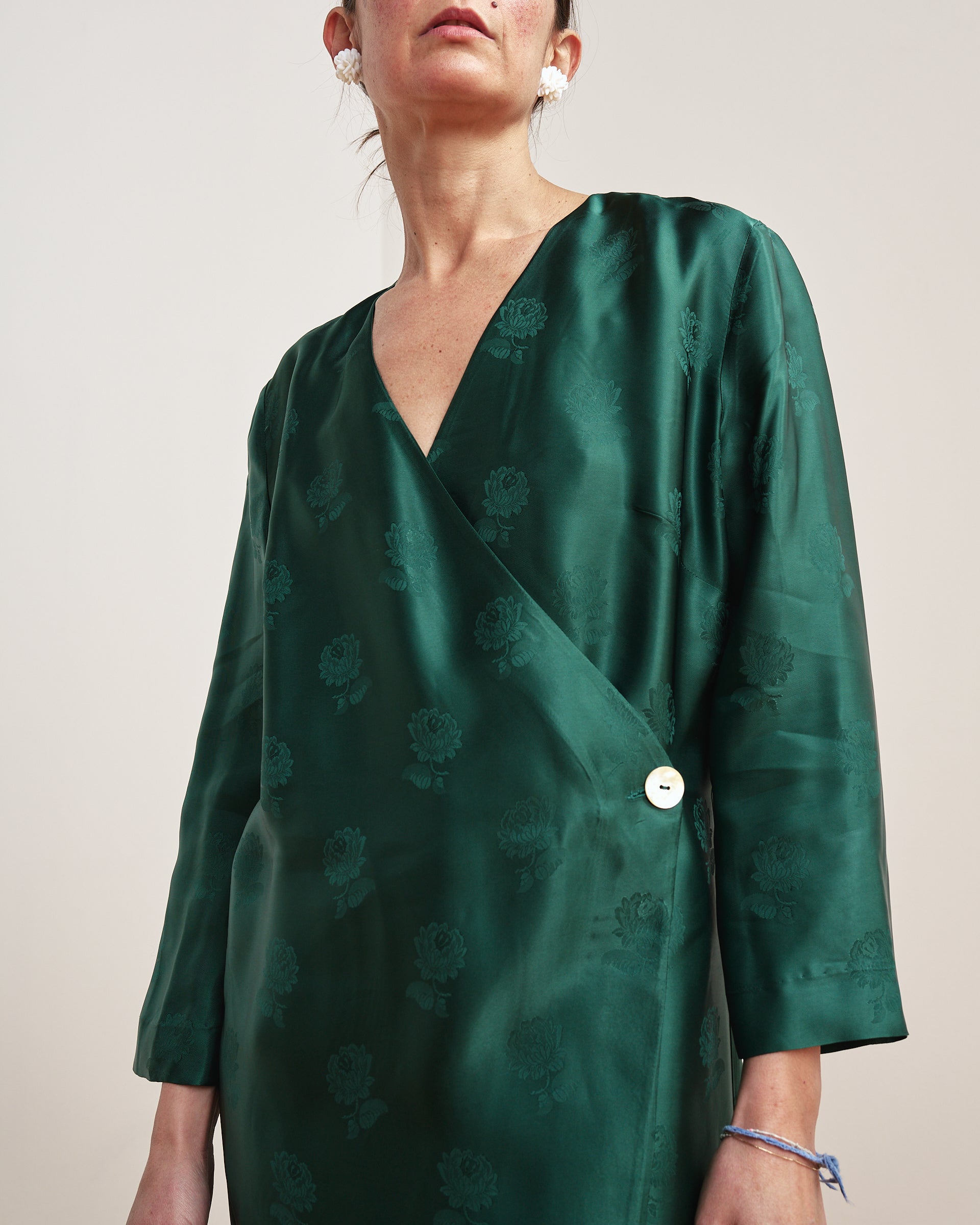 Abito Luisa | Fresco di Lana Principe di Galles Riga Verde