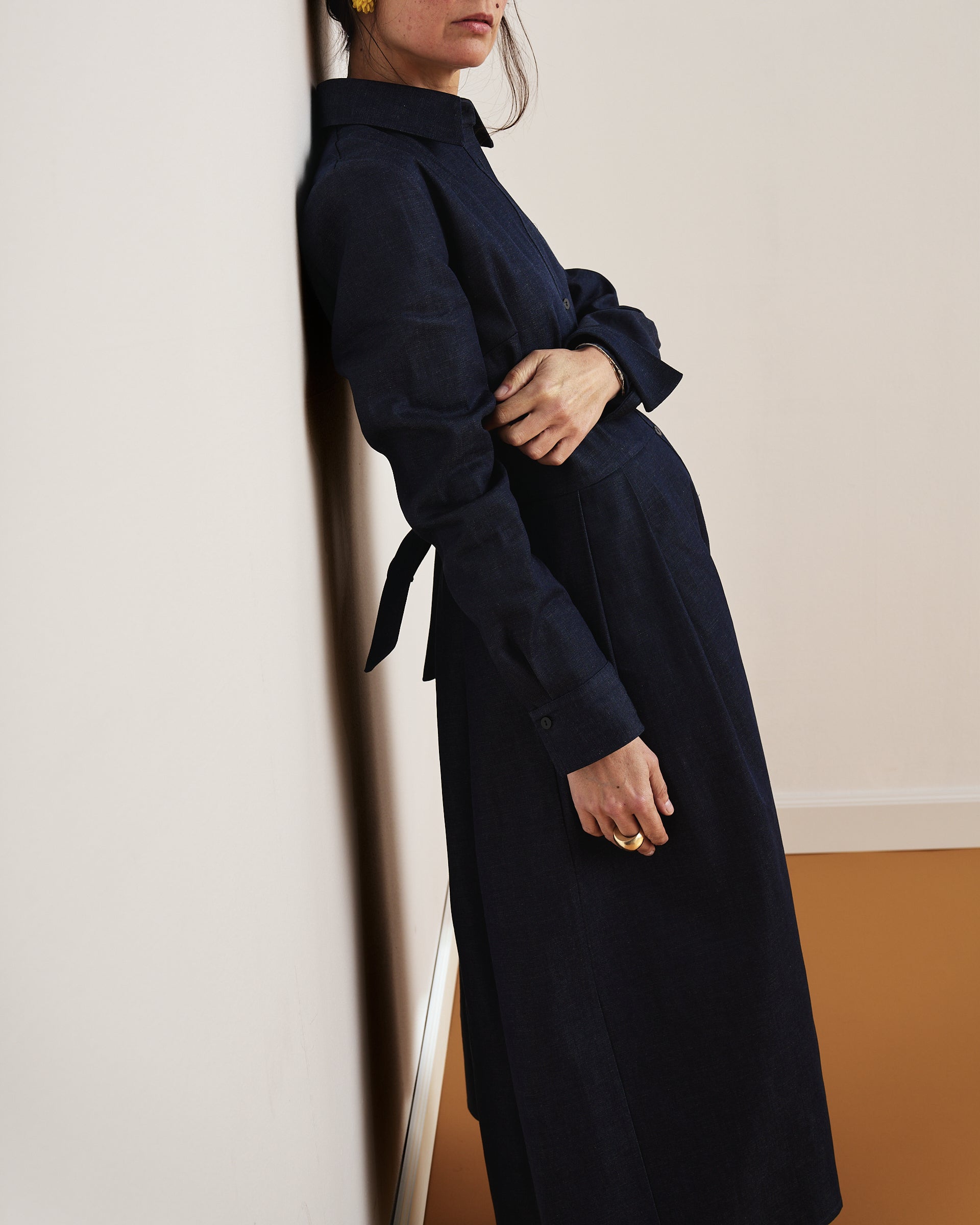 Abito Luisa | Fresco di Lana Principe di Galles Riga Azzurra