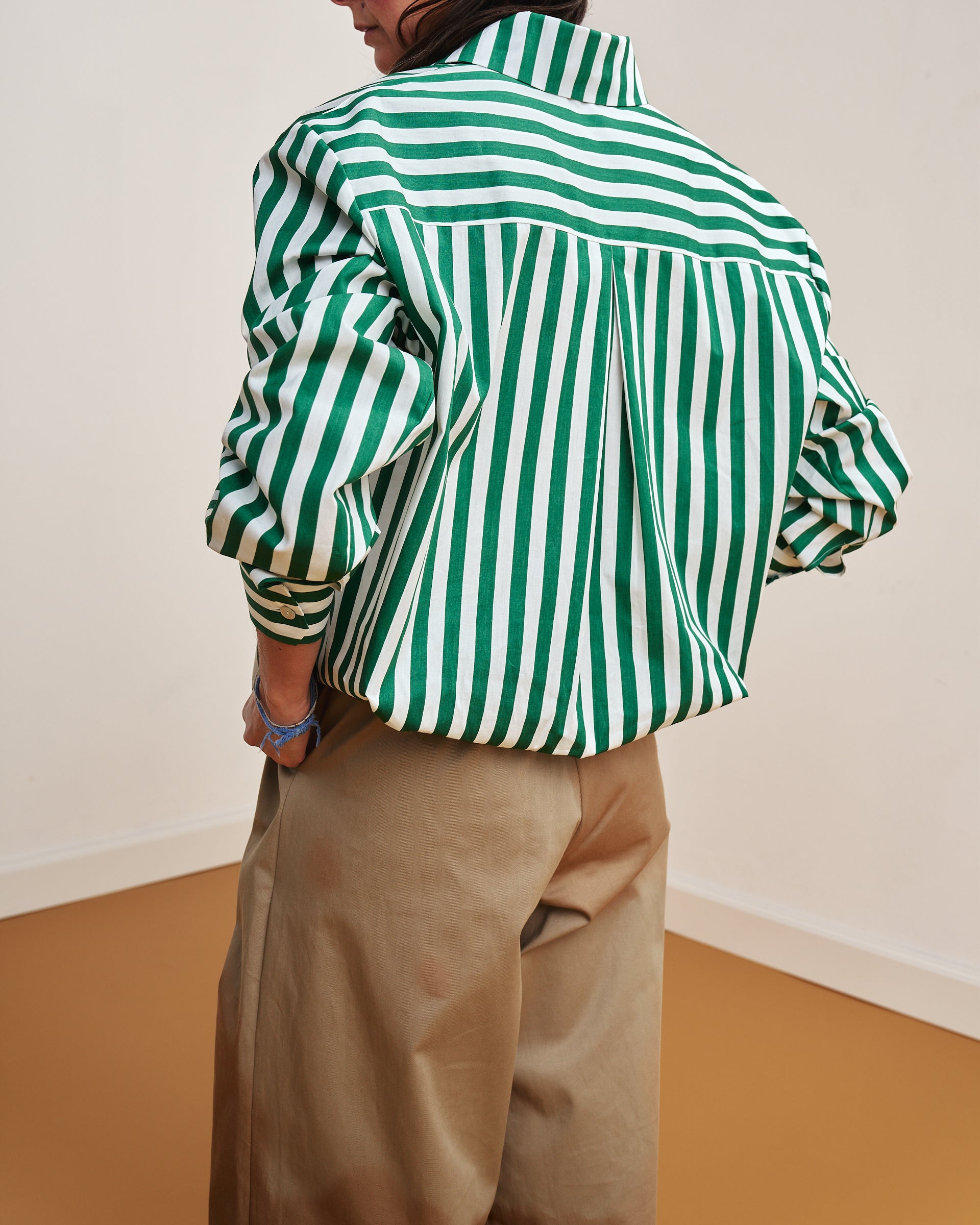 Camicia Lina | Cotone Righe Bianco e Verde