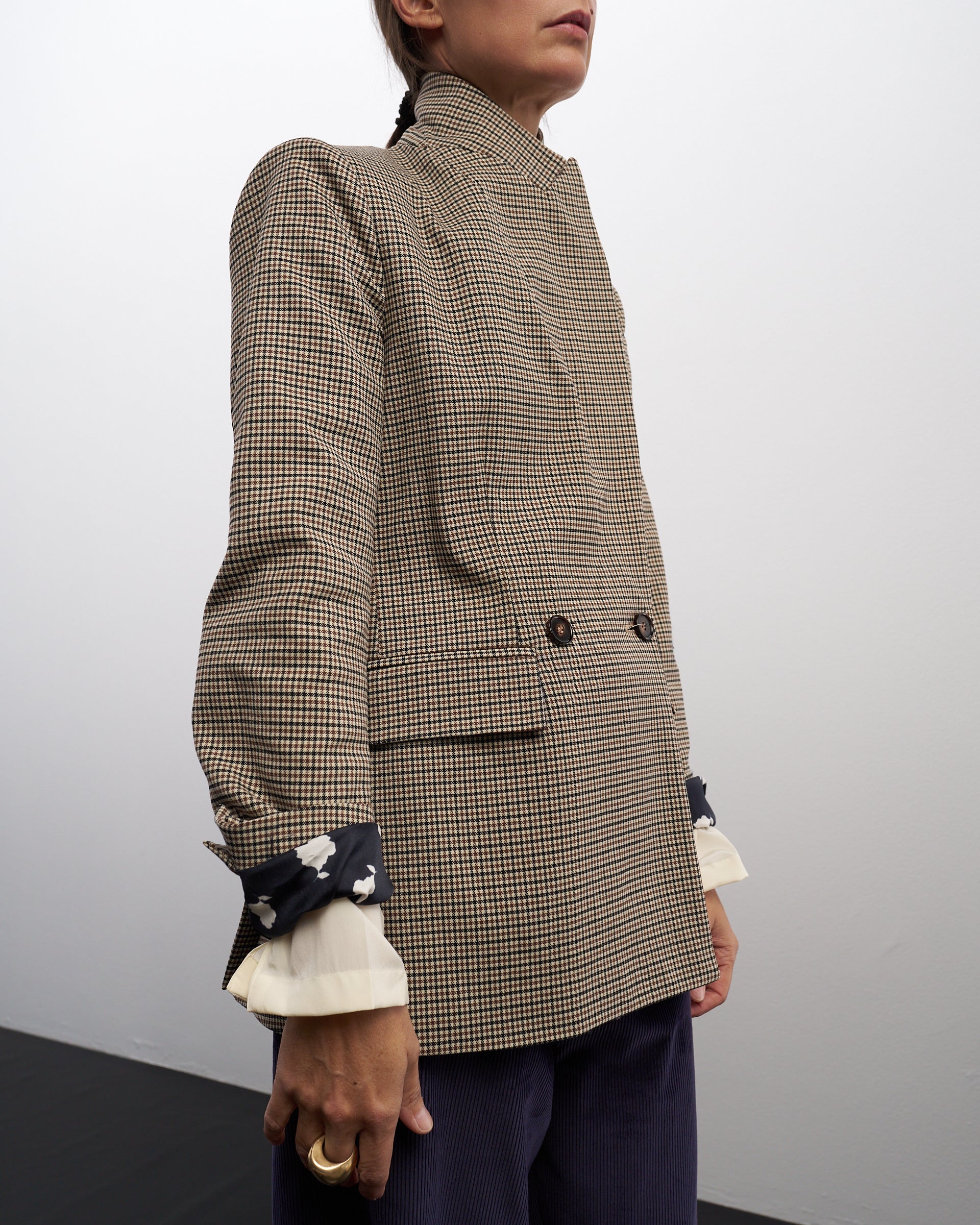 Lucio è un blazer dalla classica impostazione a doppiopetto, ma con solo 2 bottoni anzichè 4, un capo dalla silhouette impeccabile, ma super versatile ed elegante.