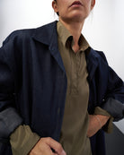 La giacca Kyoko è un pratica over shirt che diventa una bellissima giacca di peso medio, un'ottima alternativa al giubbino per la mezza stagione, perfetta anche come primo strato sotto un capo spalla in inverno, o in estate per le serate più fresche.