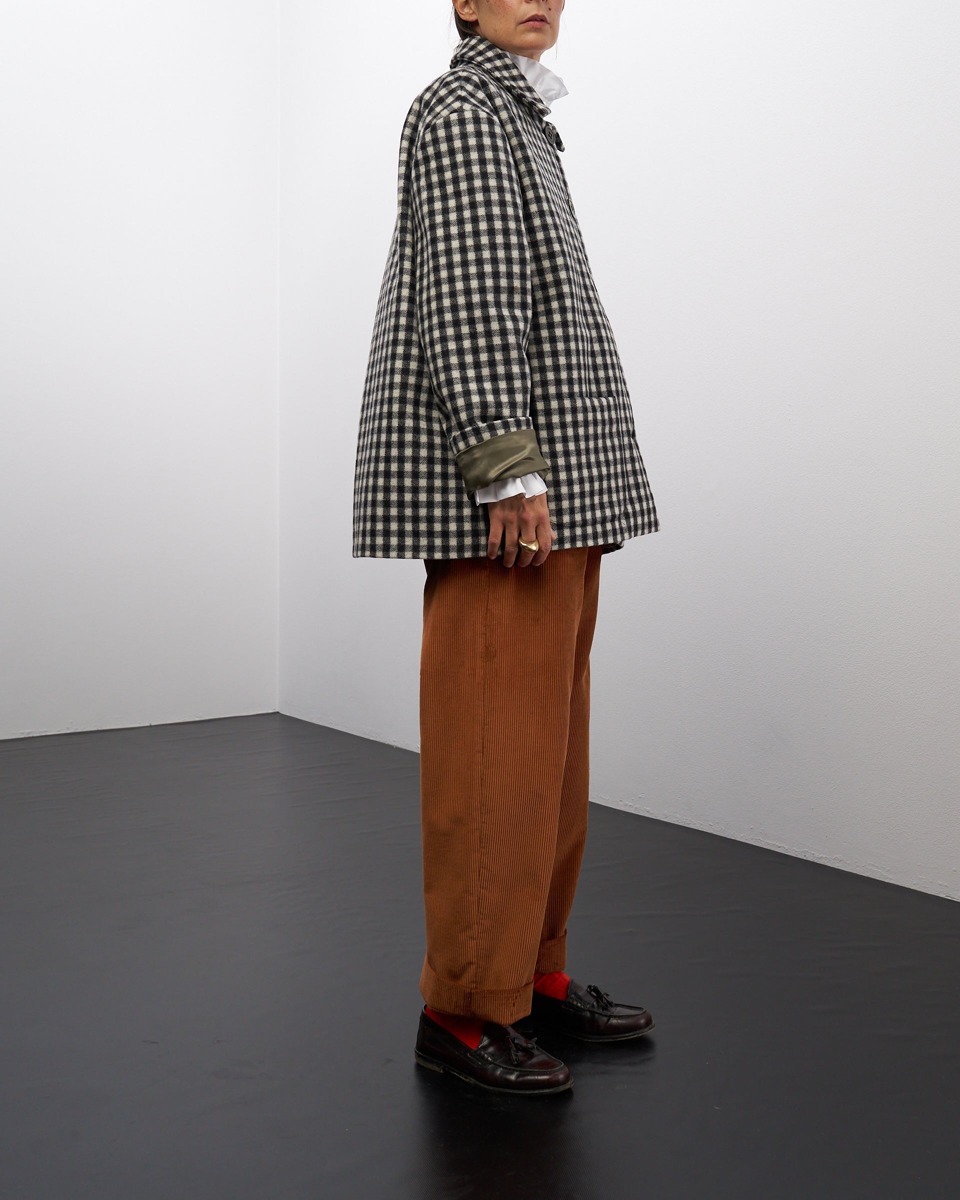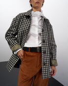 Allacciatura con bottoni sul davanti, due ampie tasche frontali, un colletto semplice, le maniche dritte e le fodere a contrasto in seta e viscosa, sono dettagli sartoriali che rendono questo giaccone super chic, ma adatto alla vita contemporanea.