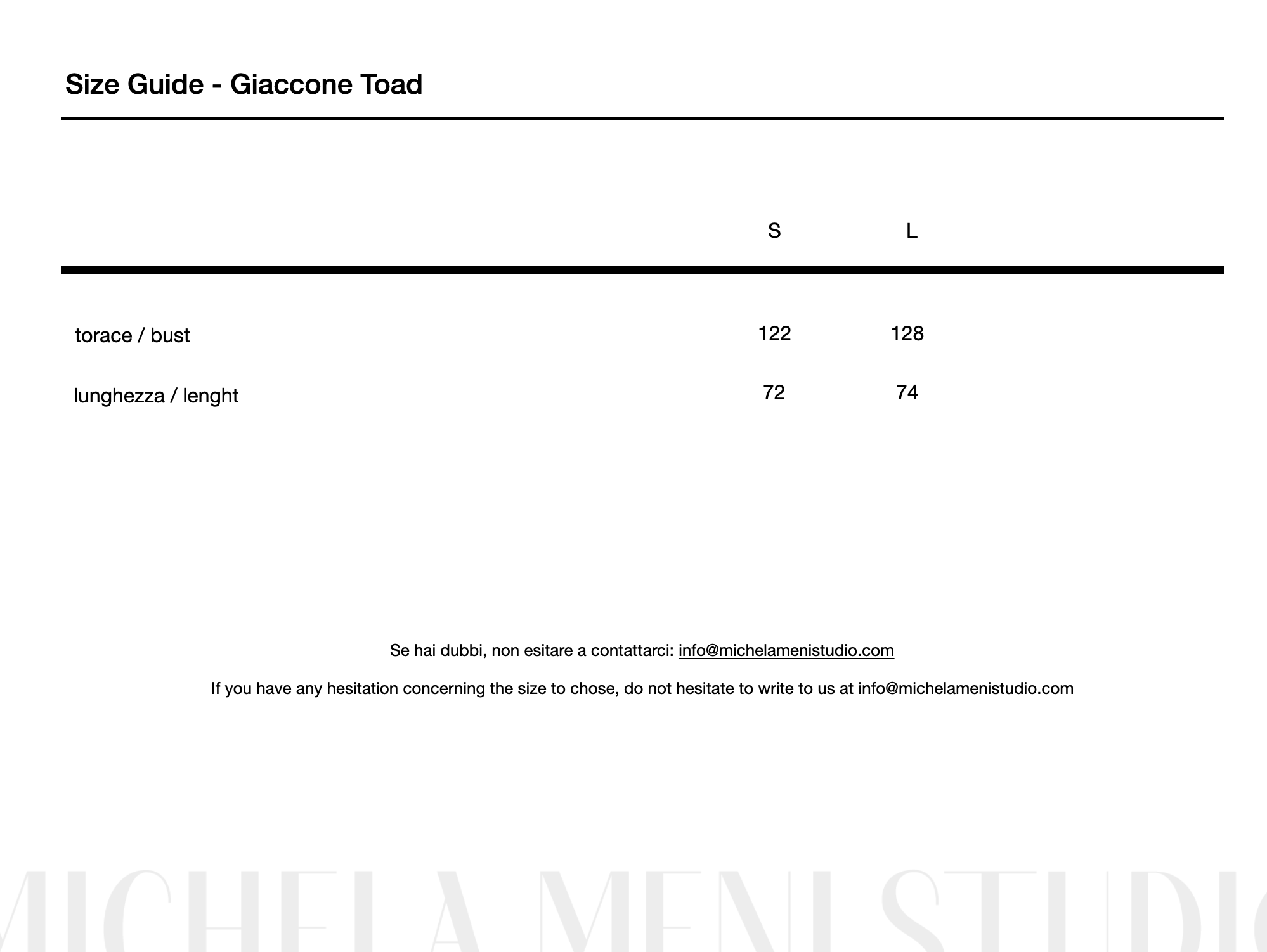 Prima di perfezionare il tuo acquisto consulta la tabella taglie. Se hai dubbi scrivici!