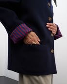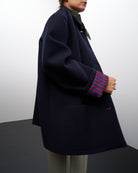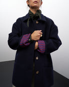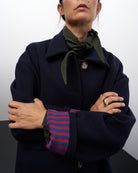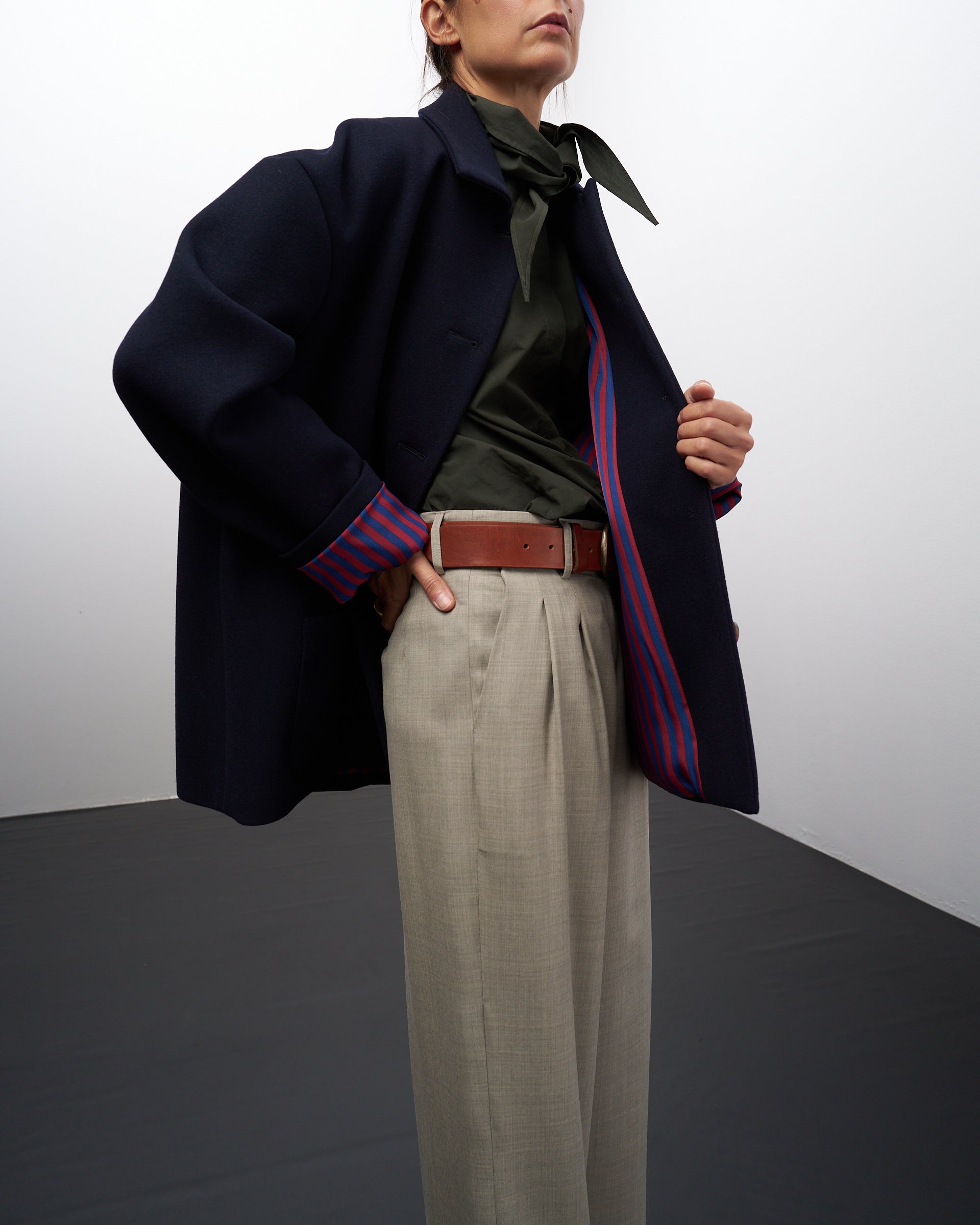 Allacciatura con bottoni sul davanti, due ampie tasche frontali, un colletto semplice, le maniche dritte e le fodere a contrasto in seta e viscosa, sono dettagli sartoriali che rendono questo giaccone super chic, ma adatto alla vita contemporanea.