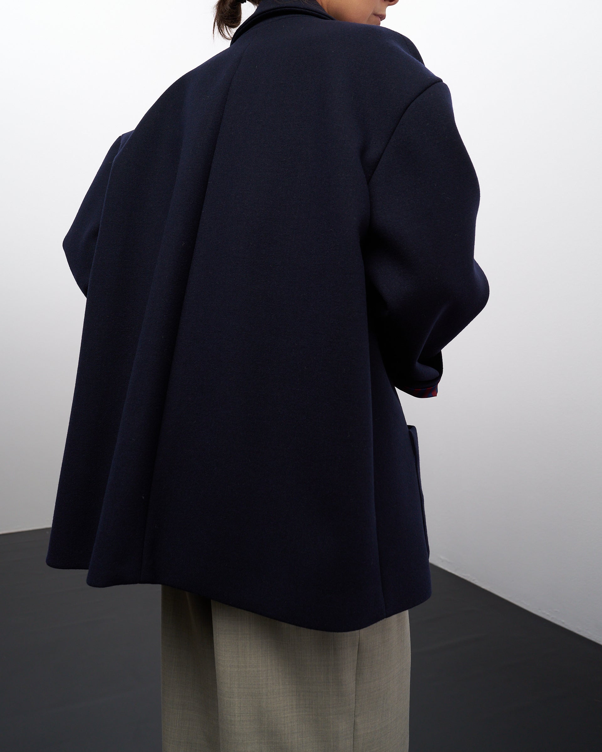 Silhouette ampia, spalle comode e una lunghezza appena sopra il bacino, che lascia liberi i fianchi per un capo dal fascino intramontabile.