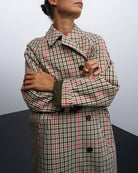 Gli elementi che caratterizzano questo capo sono la classica allacciatura sul davanti con bottoni coperti, il colletto rigoroso, i bottoni alle maniche, le tasche sul davanti, e uno sfondo piega sul retro.
