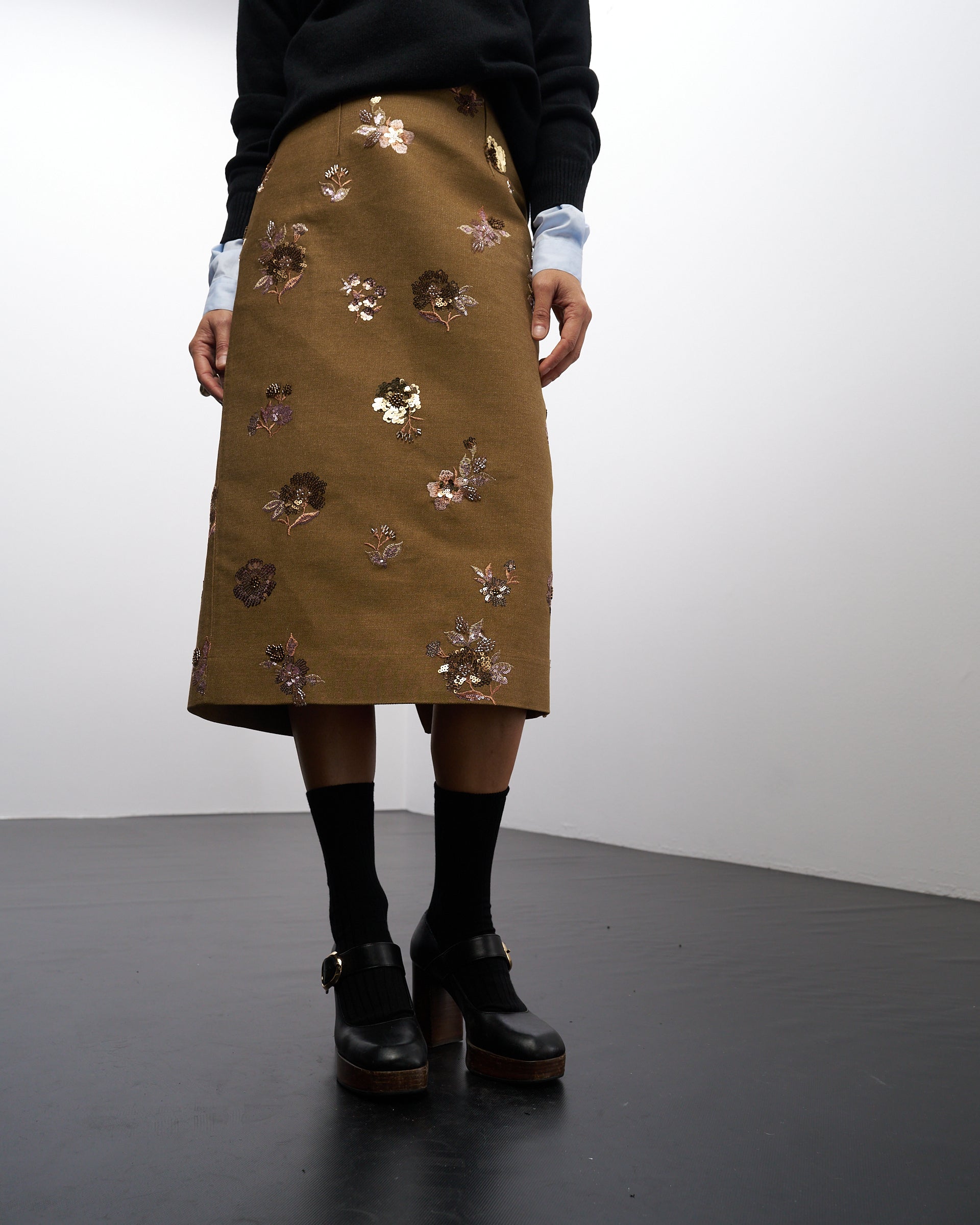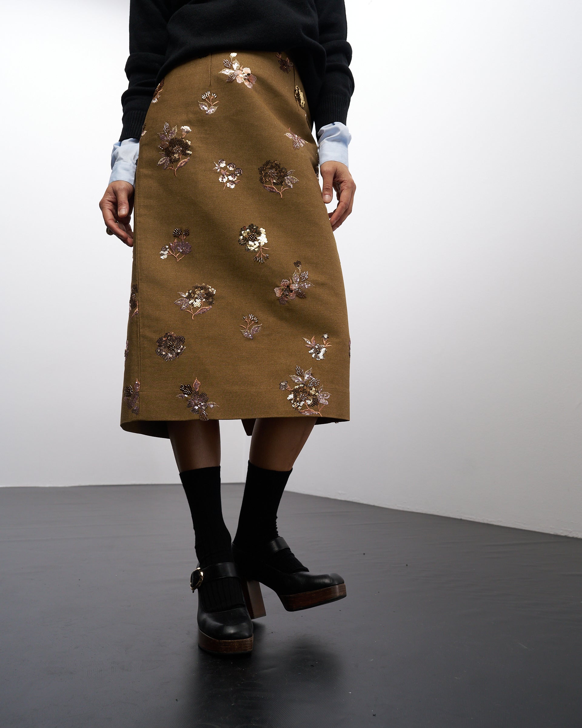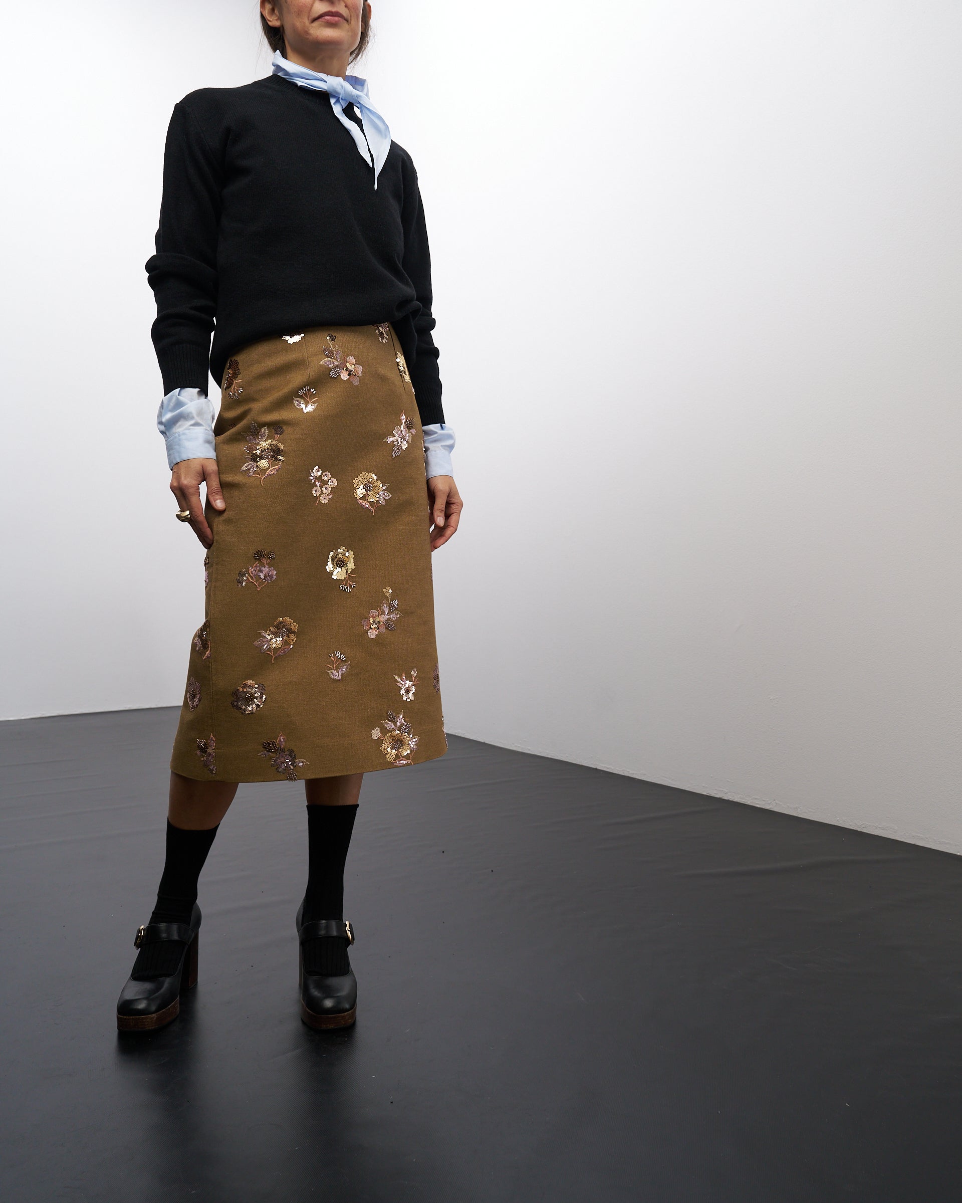 Gonna Anita | Denim Seppia Strass e Pailettes