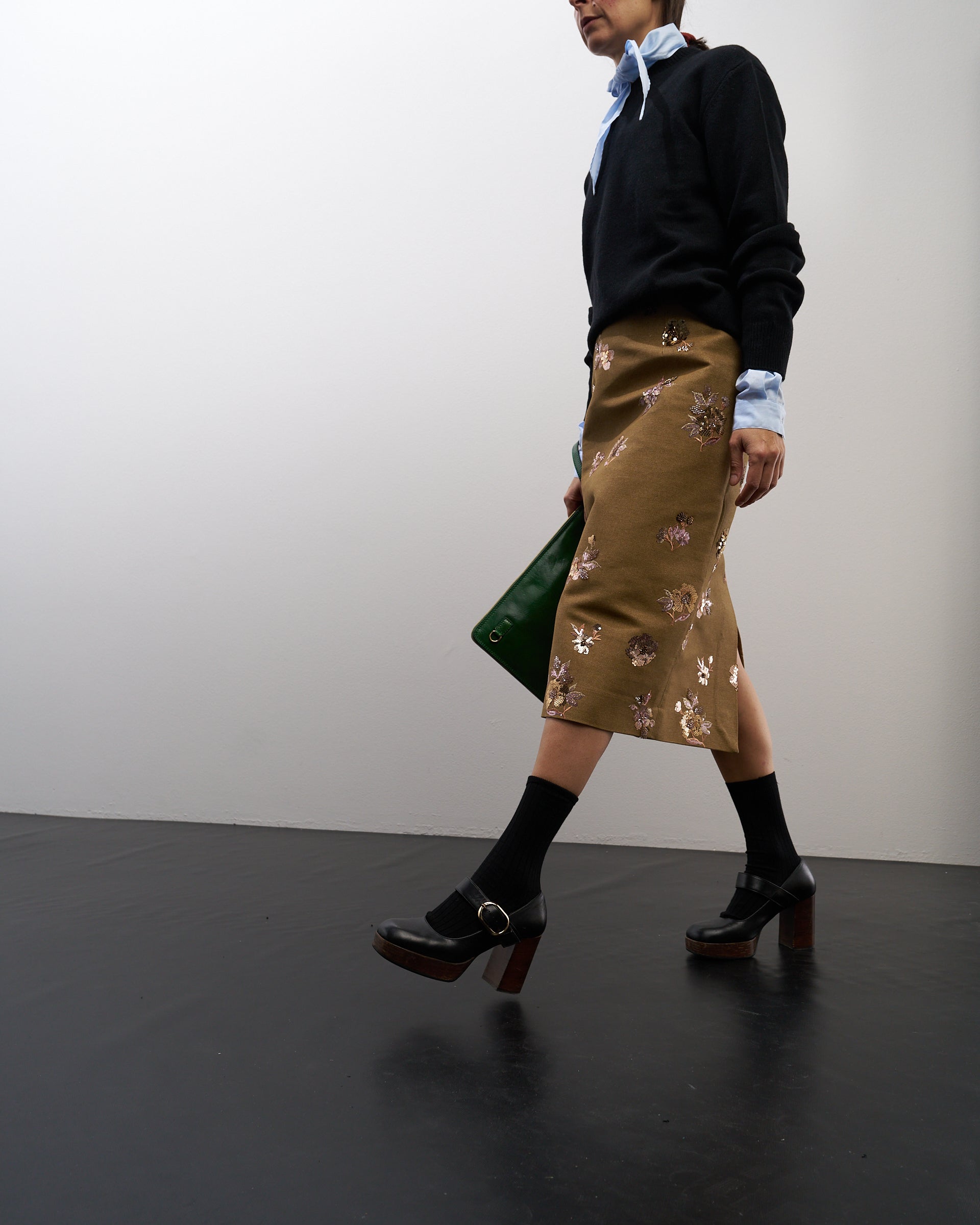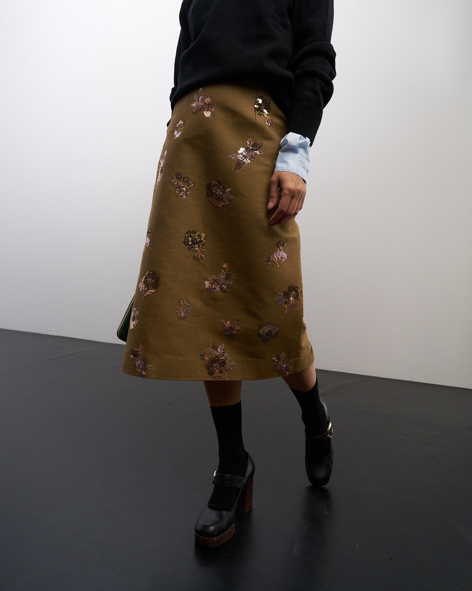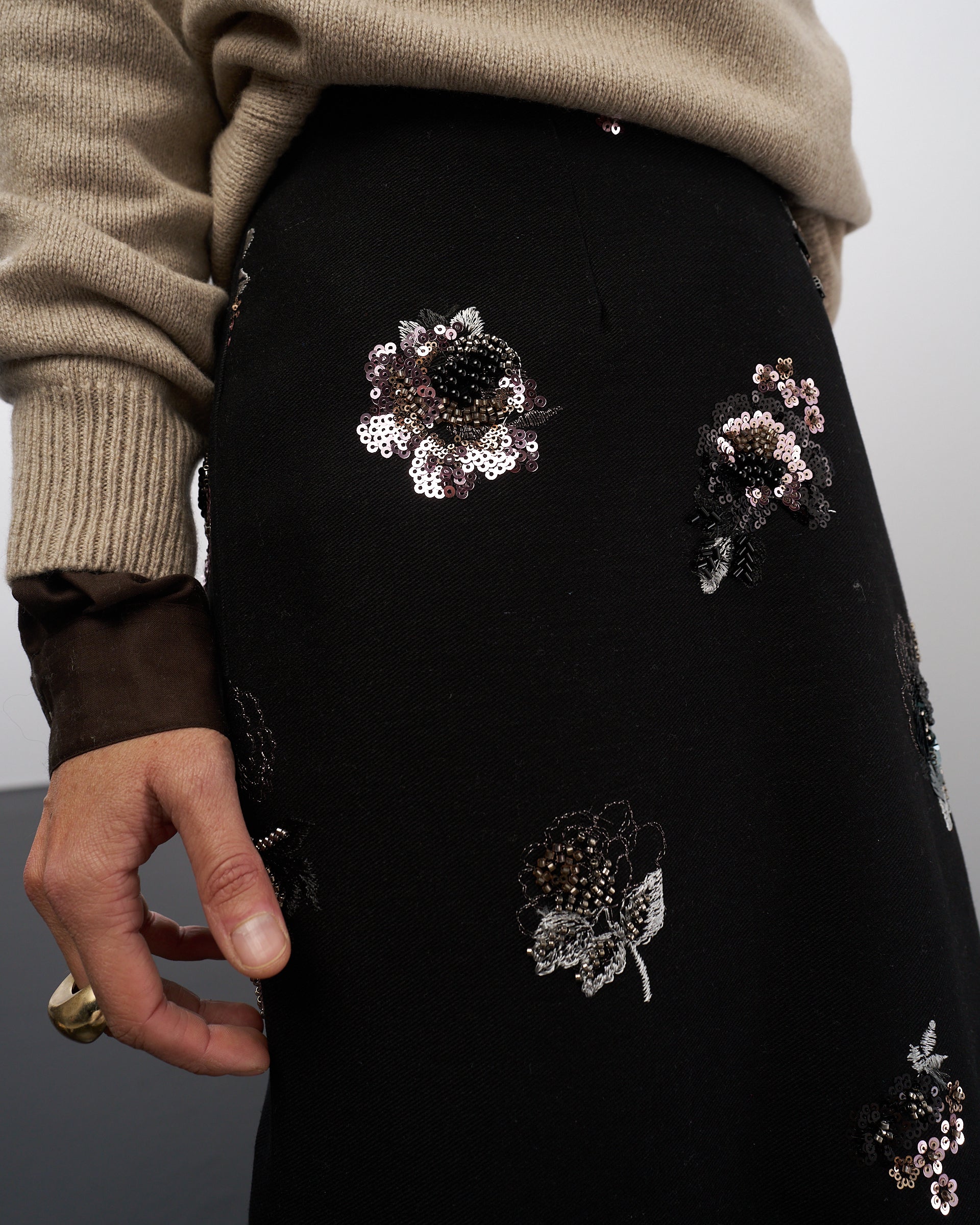 Gonna Anita | Denim Seppia Strass e Pailettes