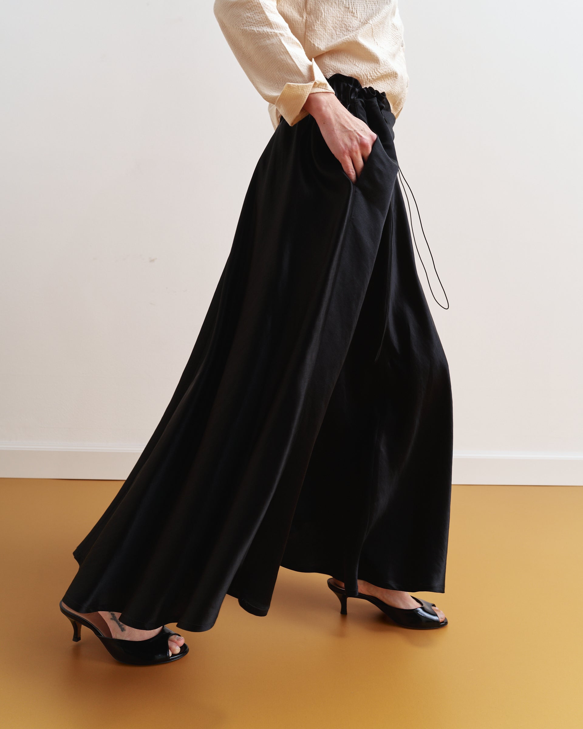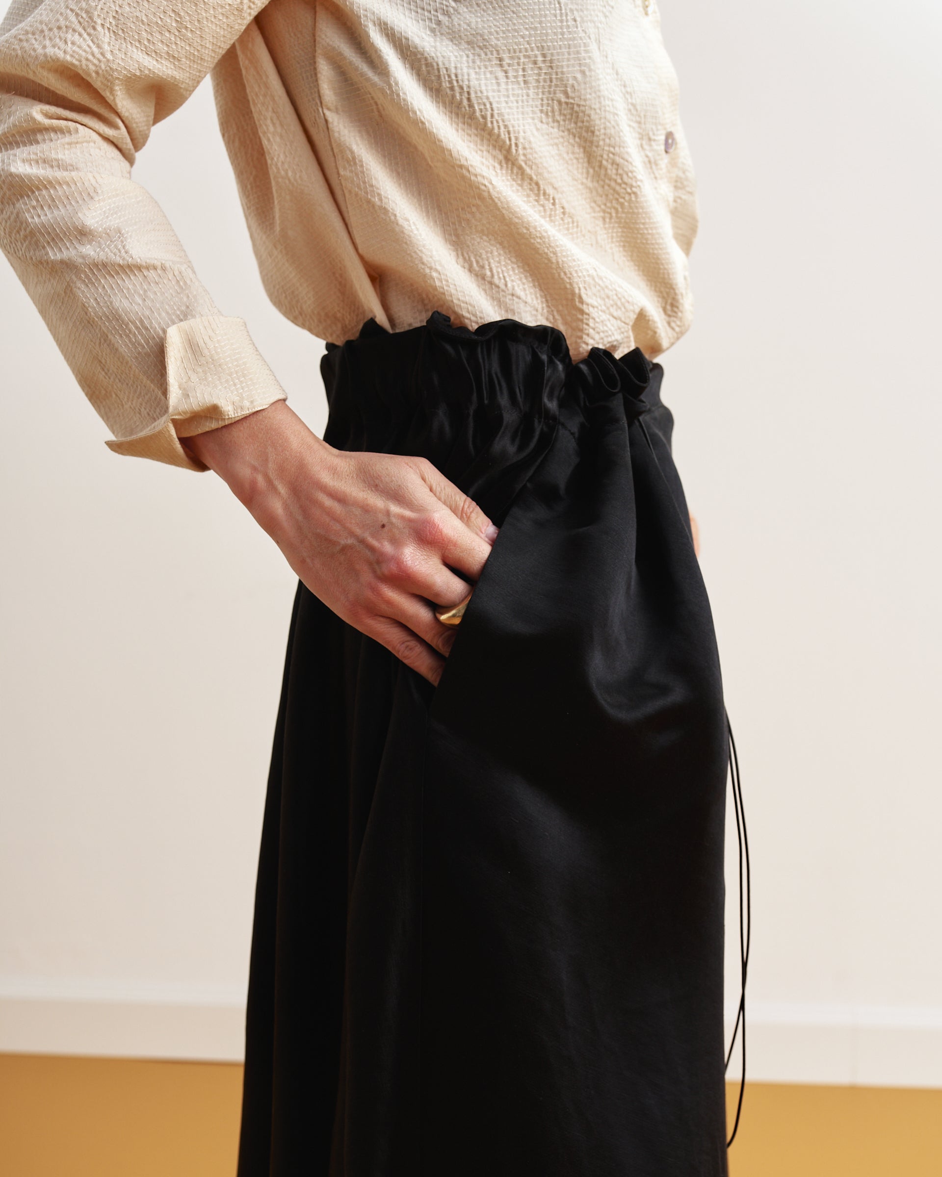 Gonna Silvia | Misto Lino e Seta Nero