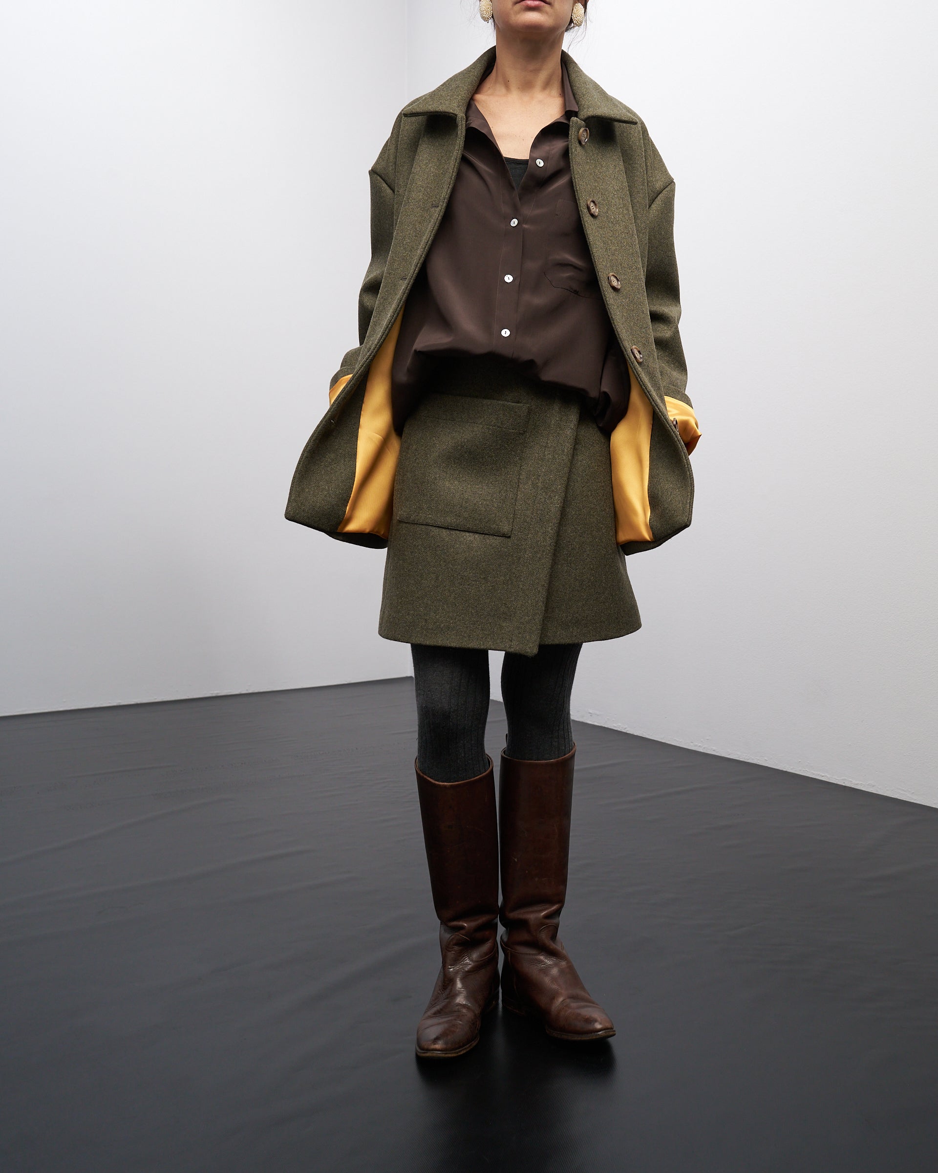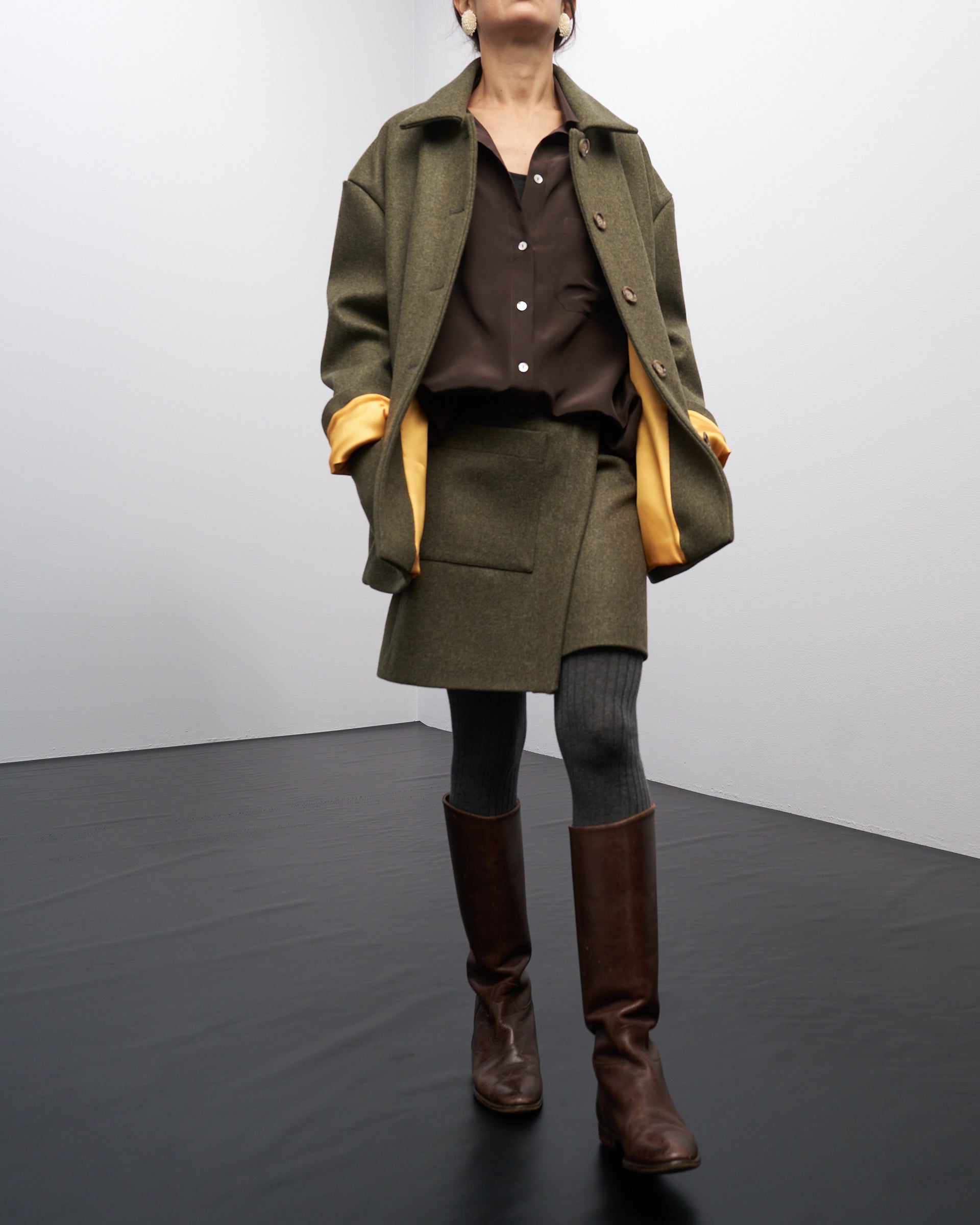 Quì è realizzata in un panno di Loden di lana, interamente foderata.