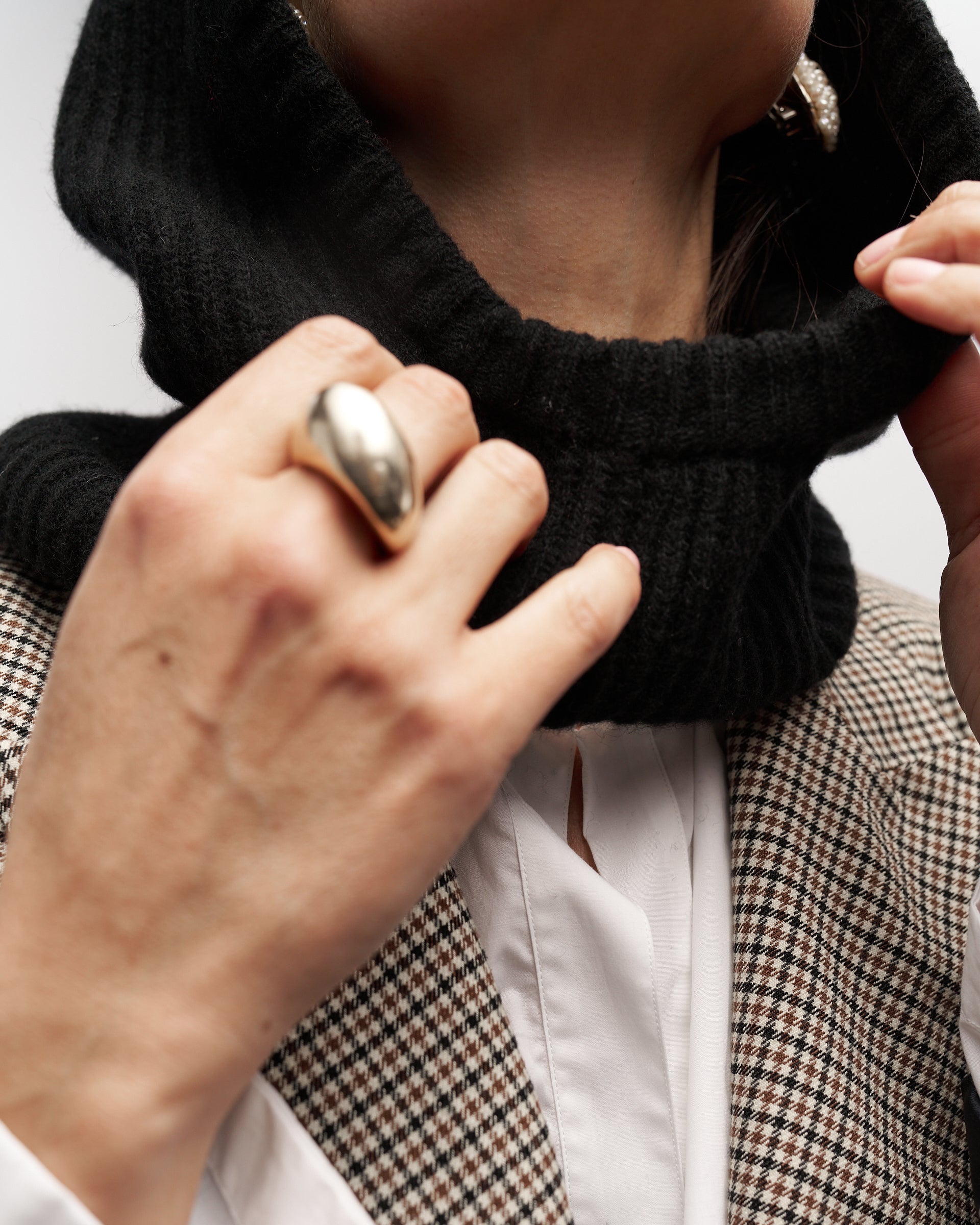Il cappuccio unisex, realizzato in cachemire e lana rigenerati, è un accessorio sostenibile, originale e funzionale. Il design a tre pezzi rammagliati e il bordo in costa, lo rendono un capo caldo e confortevole, perfetto per le giornate più fredde.