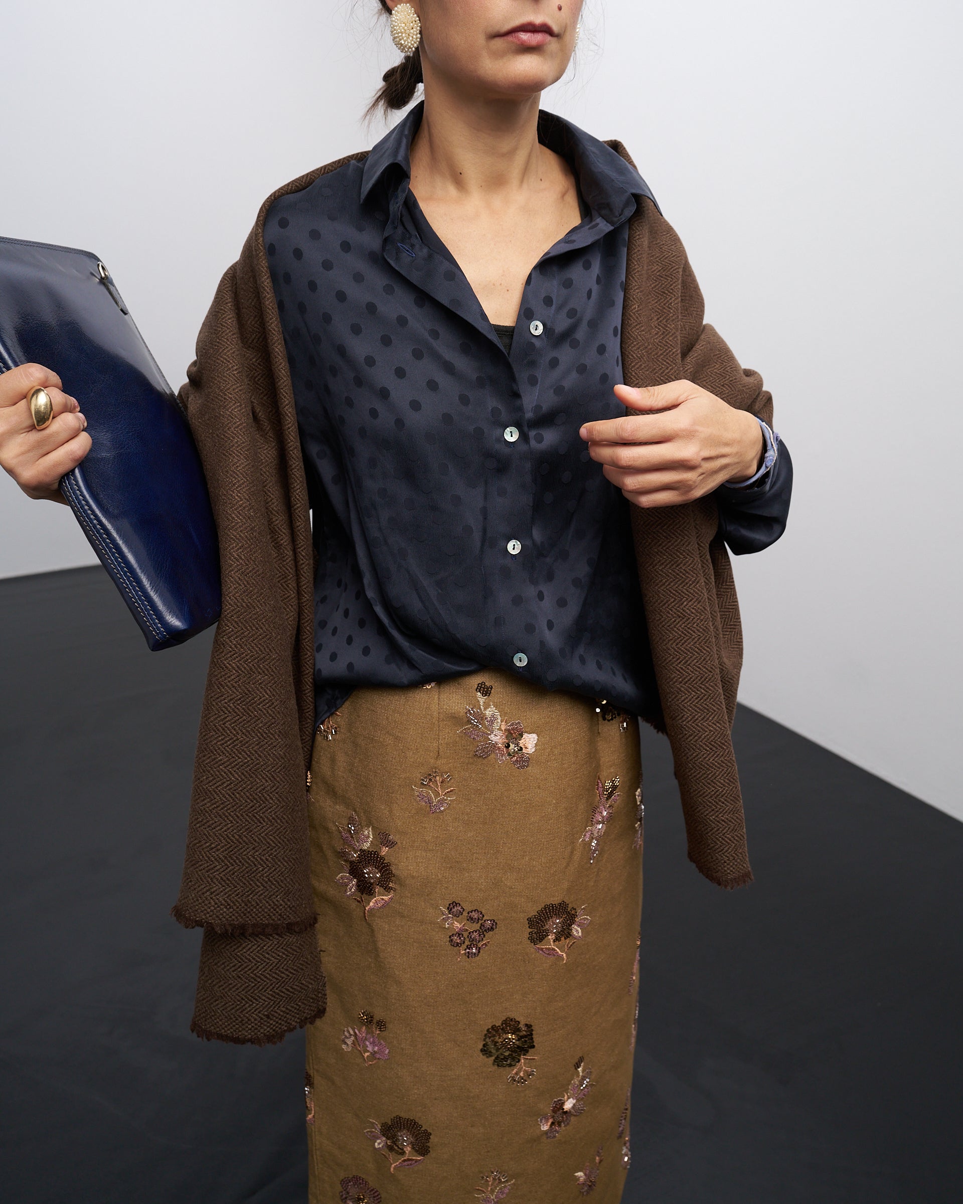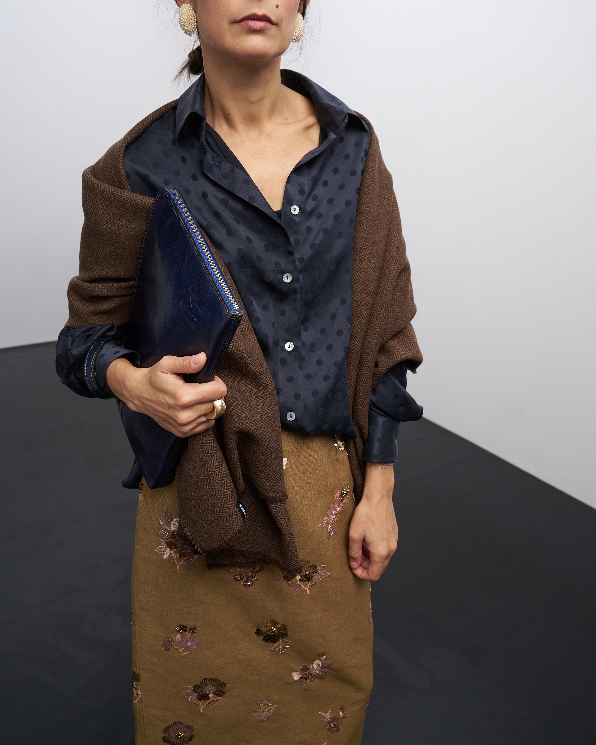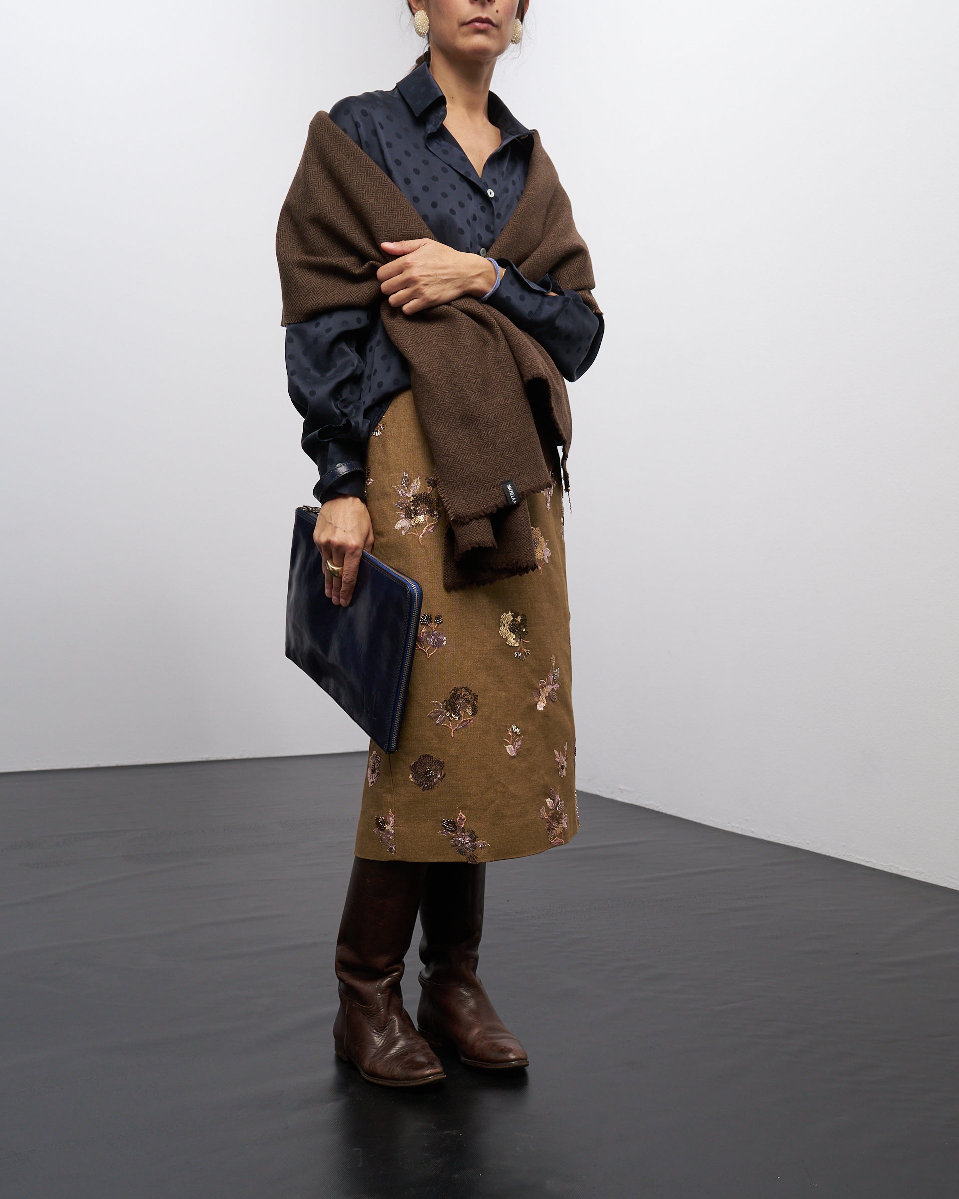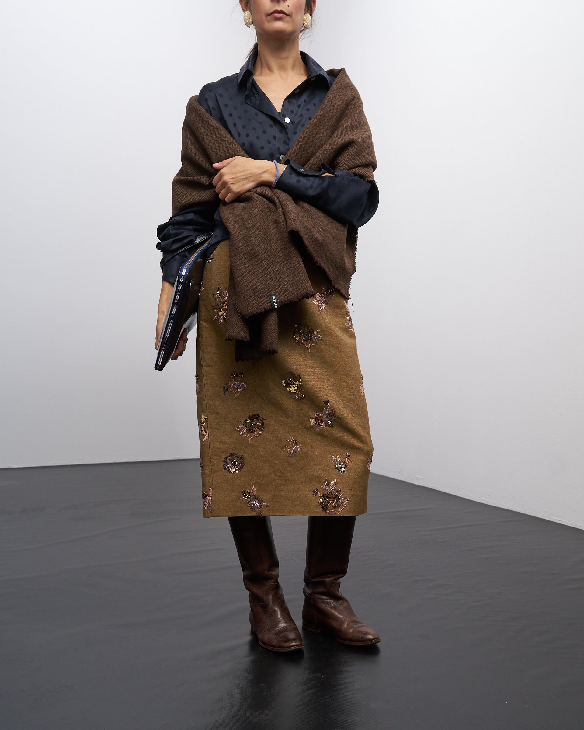 Un accessorio indispensabile per la stagione fredda, uno scialle in lana, ampio e caldo che vi accompagnerà nelle giornate più fredde, avvolgendovi collo e spalle.