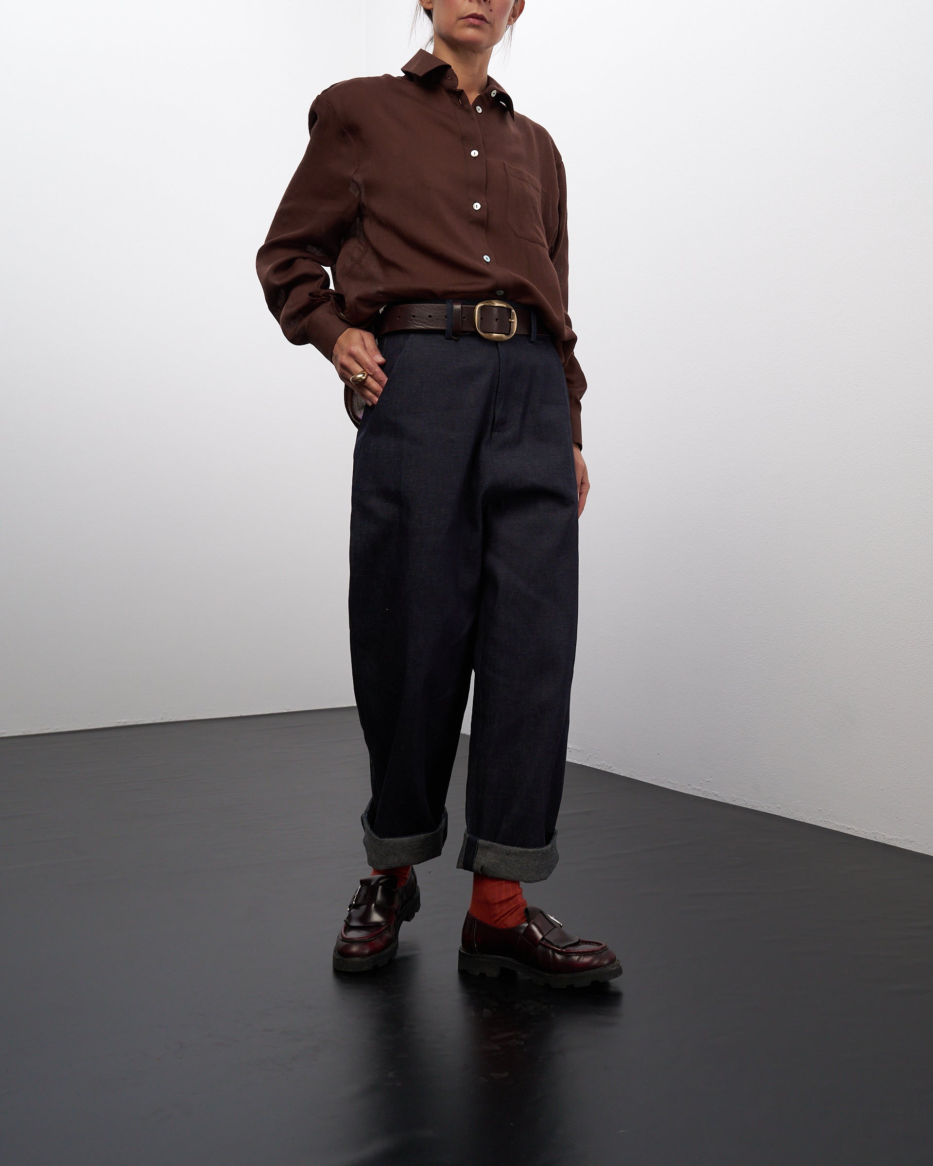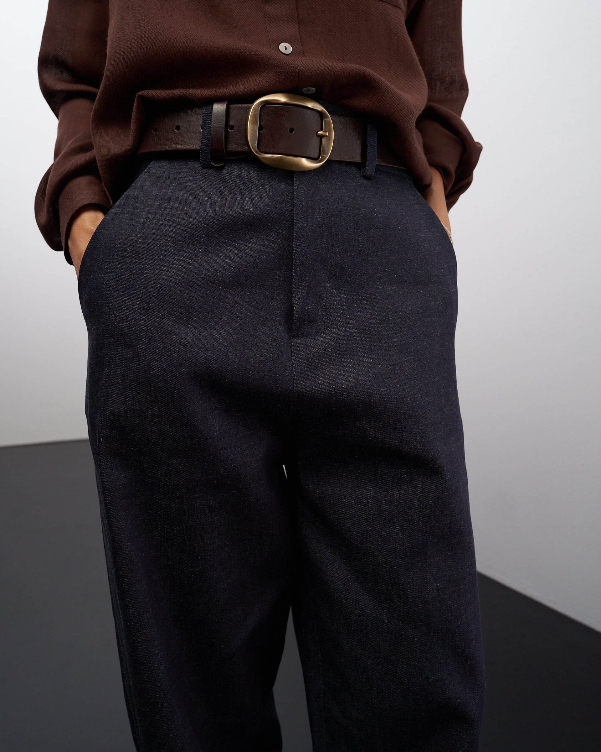 Ettore è un pantalone dalla linea leggermente a uovo, lunghezza alla caviglia, da regolare con un risvolto o come più vi piace.