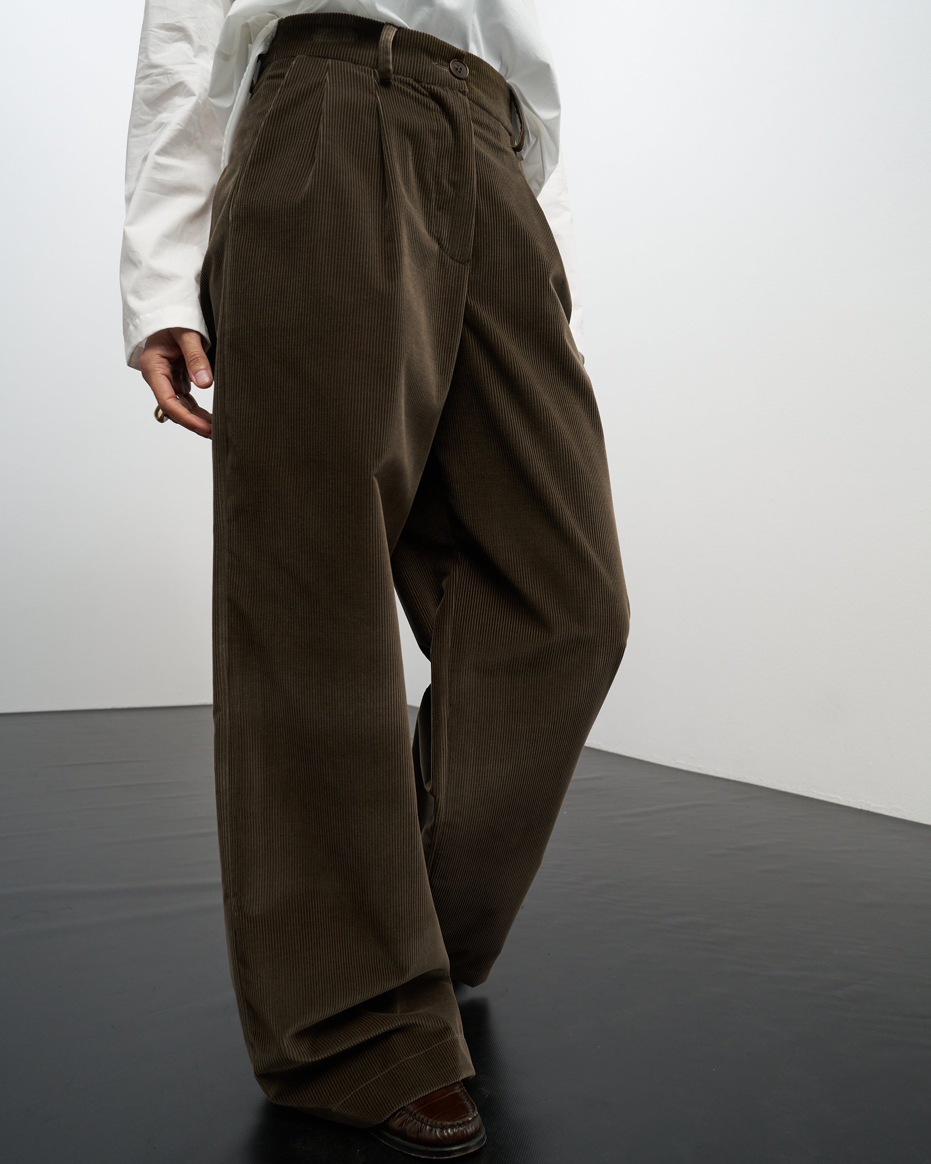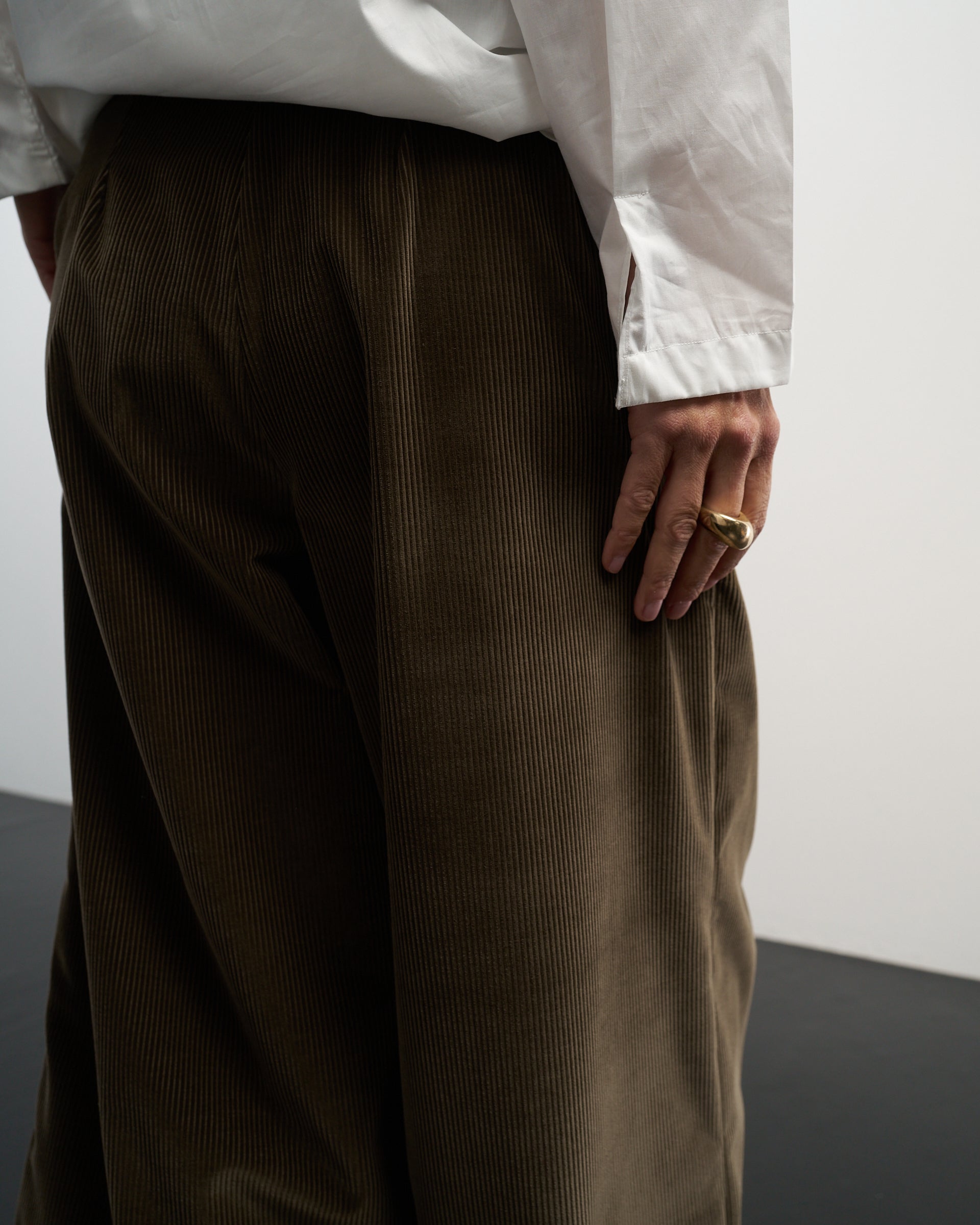 Pantalone Timo | Velluto a Costine Grigio Verde Fango