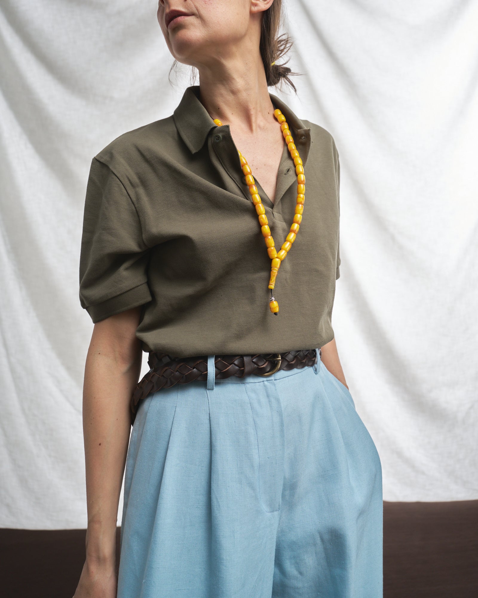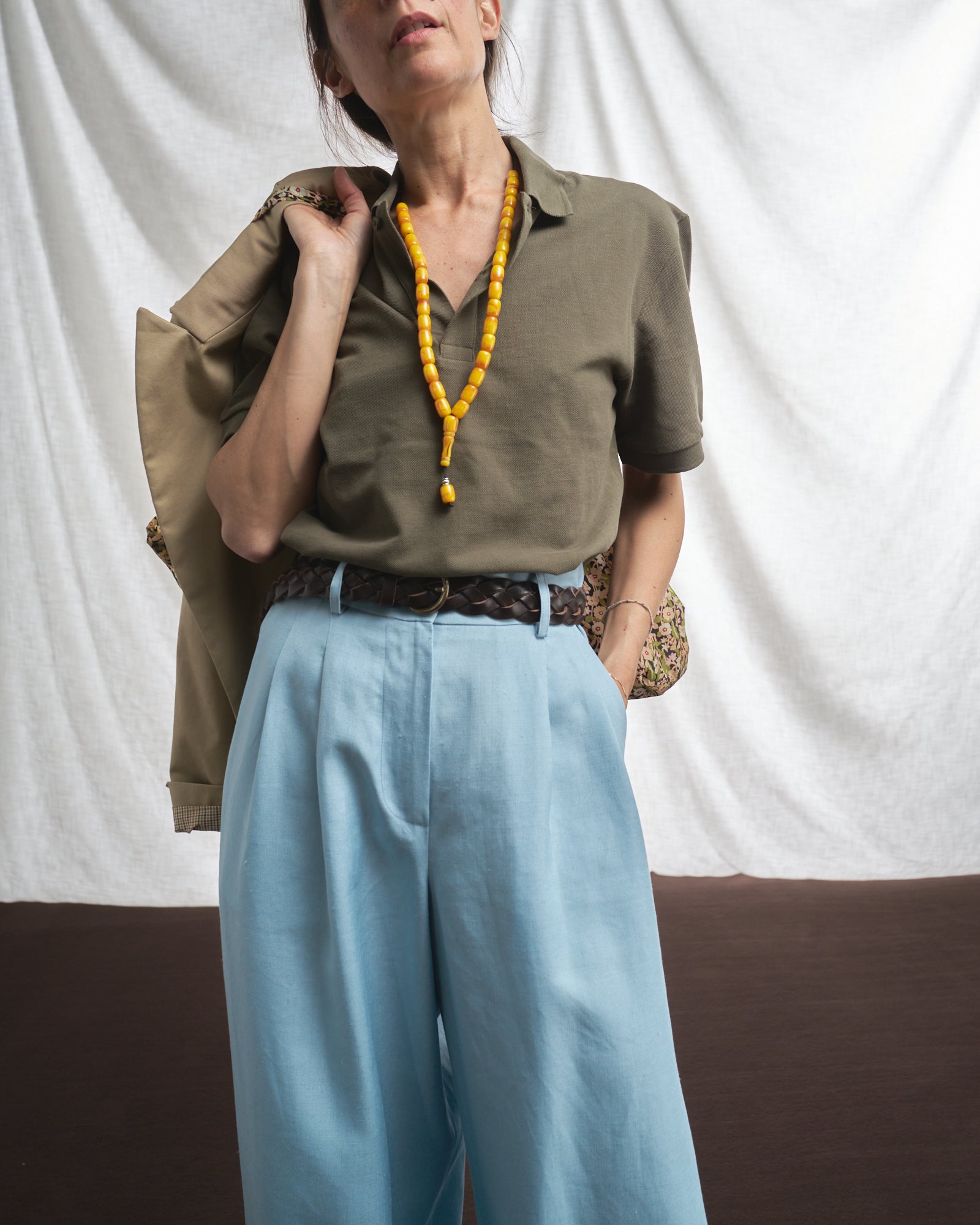 Realizzata in 100% piquet di cotone biologico, filato e pettinato.