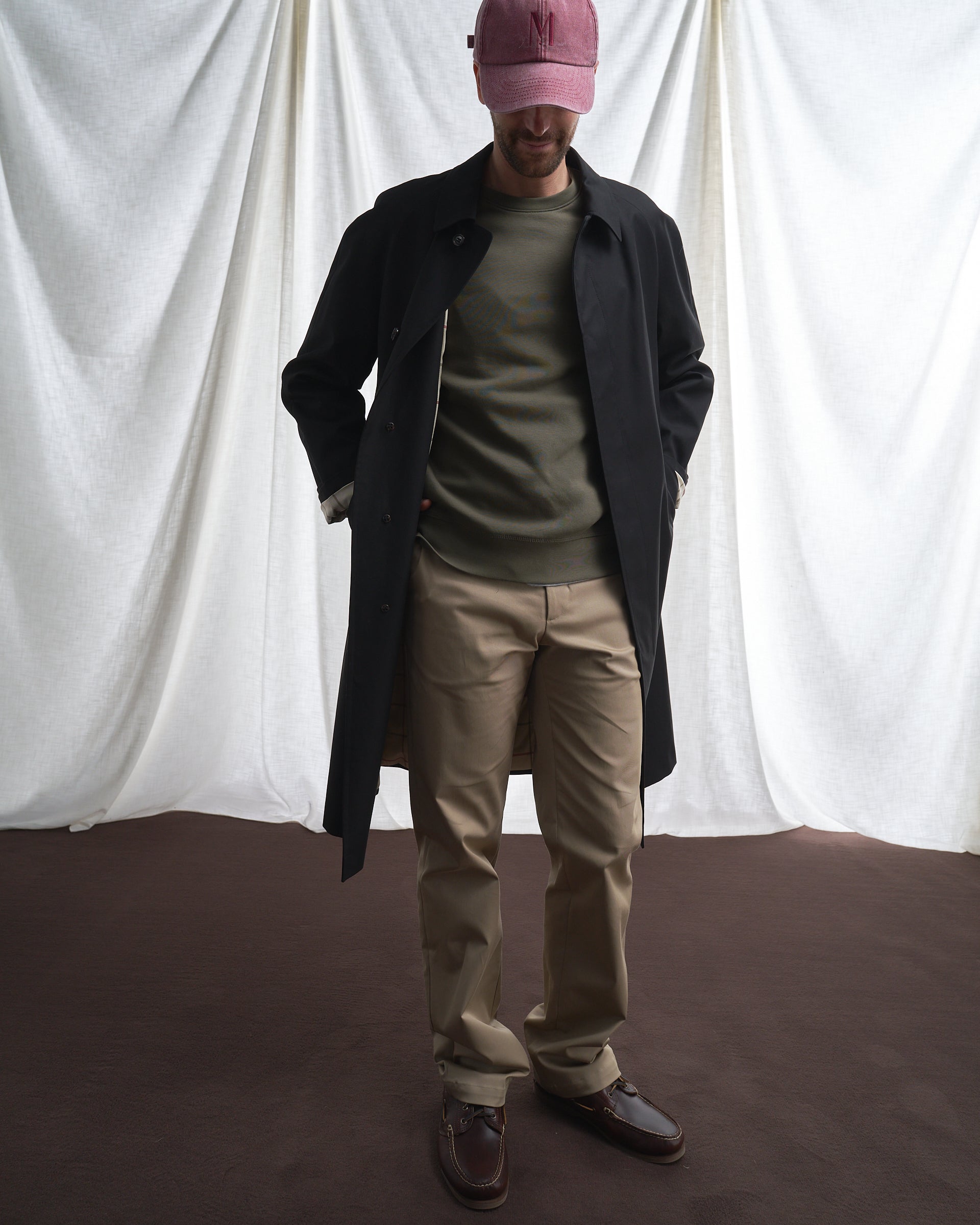 Gli elementi che caratterizzano questo capo sono la classica allacciatura sul davanti con bottoni coperti, il colletto rigoroso, i bottoni alle maniche e le tasche sul davanti, che sono anche passanti, per consentire di arrivare alle tasche dei pantaloni senza slacciare l’impermeabile.