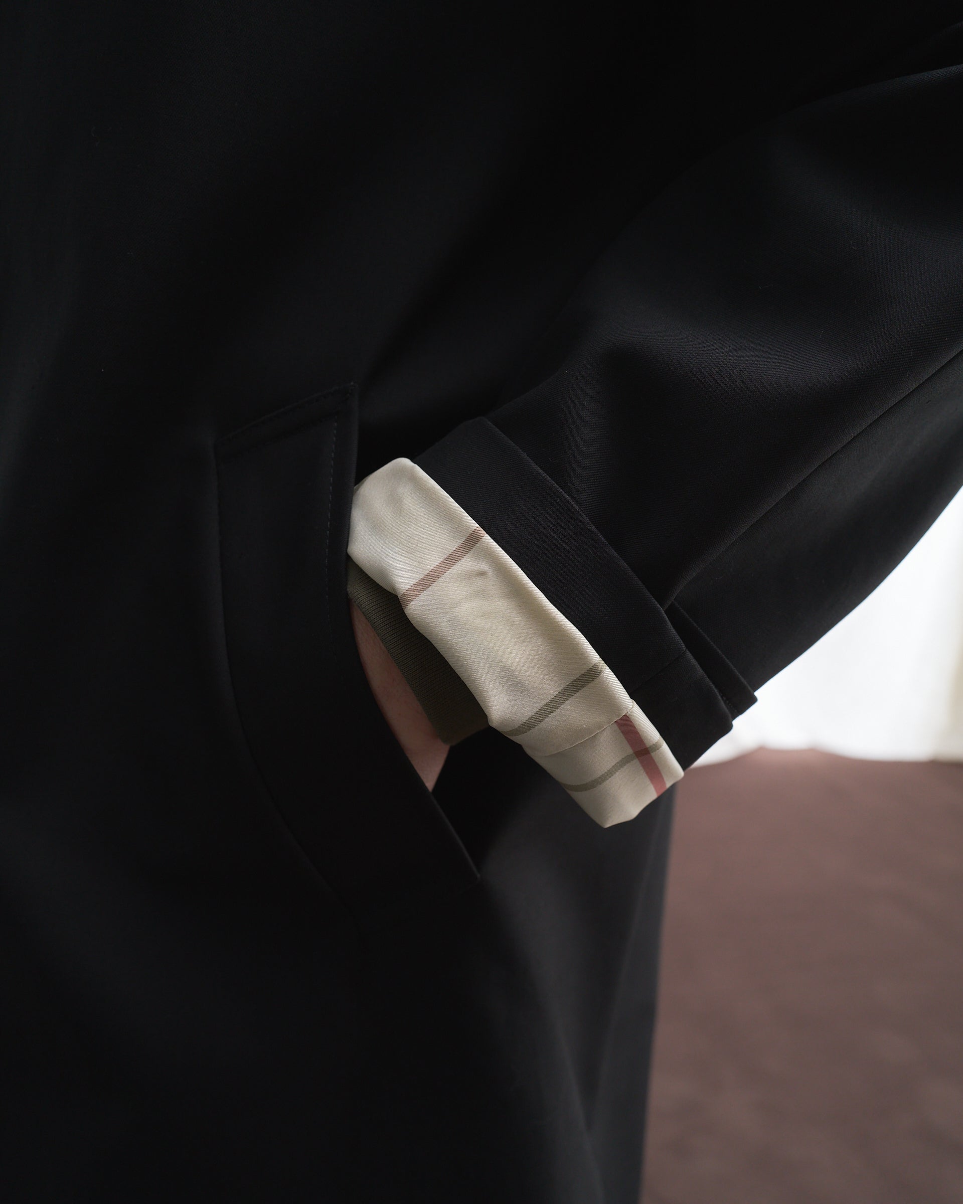 Ad impreziosire il capo ci sono poi i fantastici tessuti con cui è interamente foderato all’interno, e il taschino interno con bottone, ad altezza del cuore.