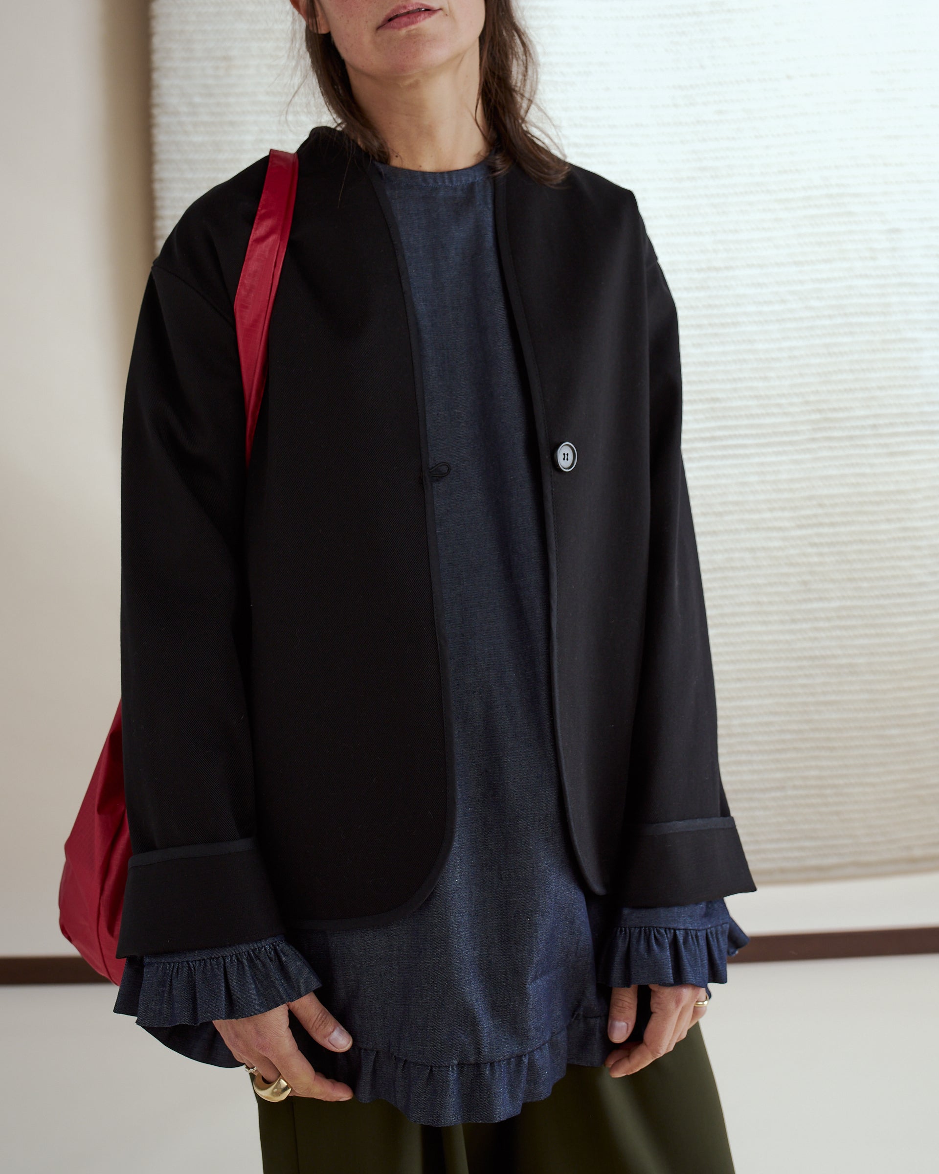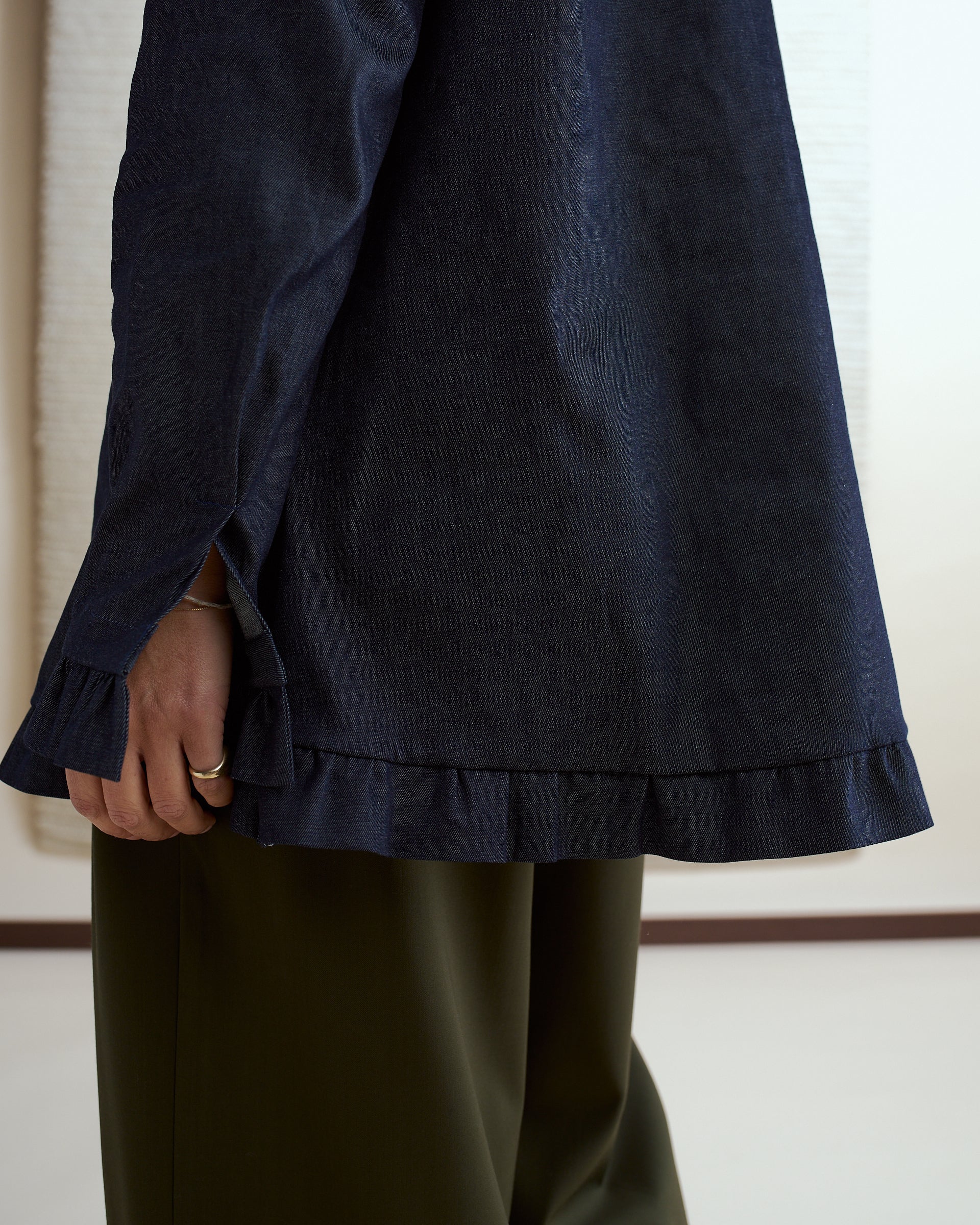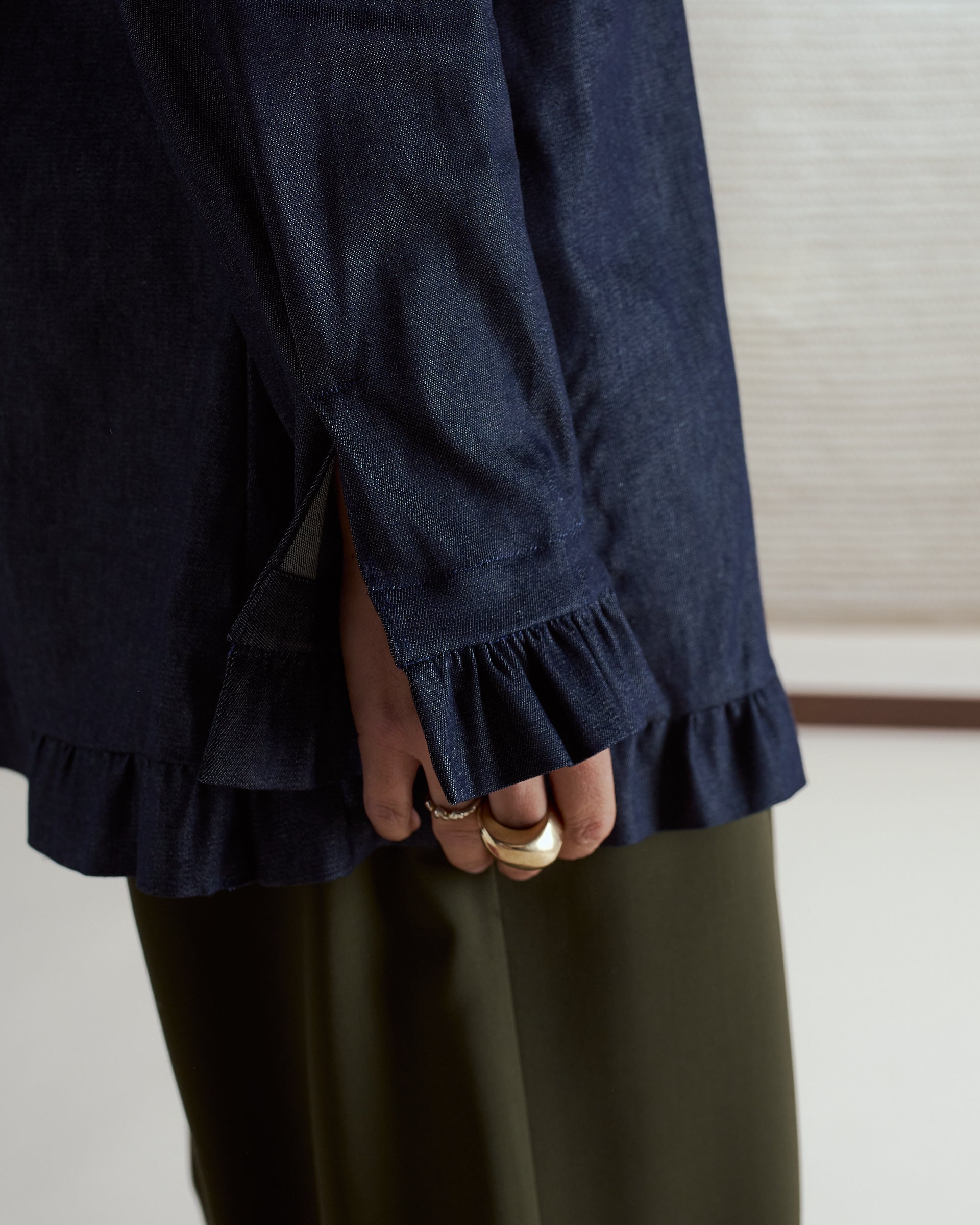 Le ruches ampie e voluminose sul fondo e ai polsi, aggiungono un tocco accattivante e irriverente che trasforma con eleganza e femminilità anche i look più basici.
