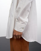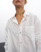 Una camicia classica e indispensabile, in popeline di cotone, a maniche lunghe, con tasca applicata sul davanti e sfondo piega sul retro.