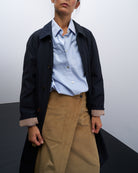 Un capo d’altri tempi, dalla confezione impeccabile, dal taglio rigoroso e ricco di dettagli speciali. Un impermeabile realizzato a regola d’arte, da laboratori specializzati in capi spalla di qualità.