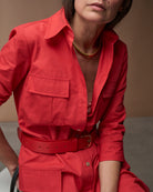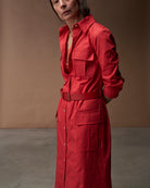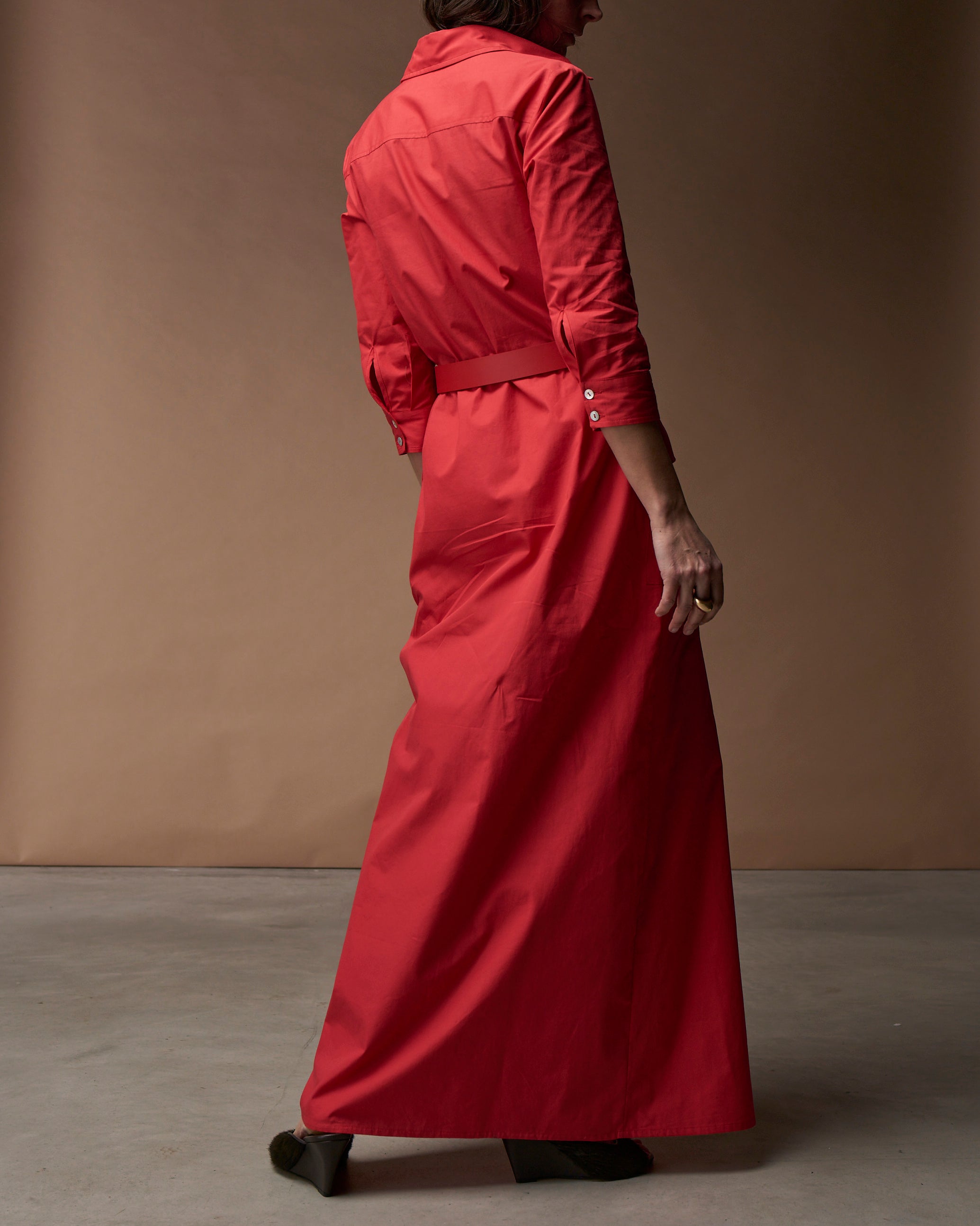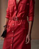 L'allacciatura all'inglese e il colletto classico, definiscono la pulizia della silhouette di questo chemisier, le 4 tasche sul davanti lo rendono divertente, le maniche a 3/4 possono essere arrotolate nelle giornate più calde e dare all'abito una nuova foggia.