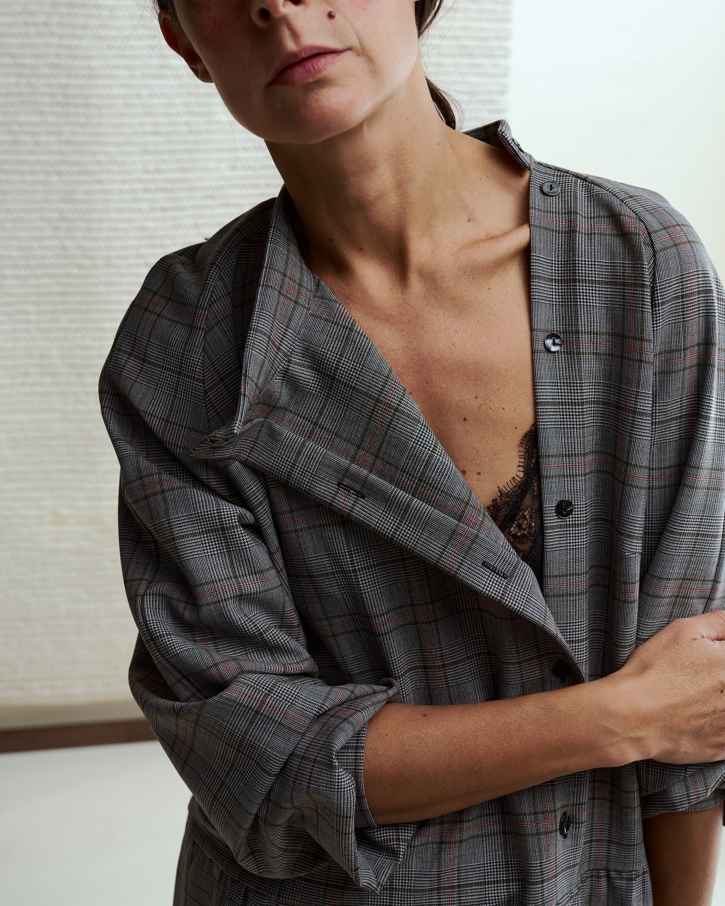 Abito Luisa | Fresco di Lana Principe di Galles Riga Verde