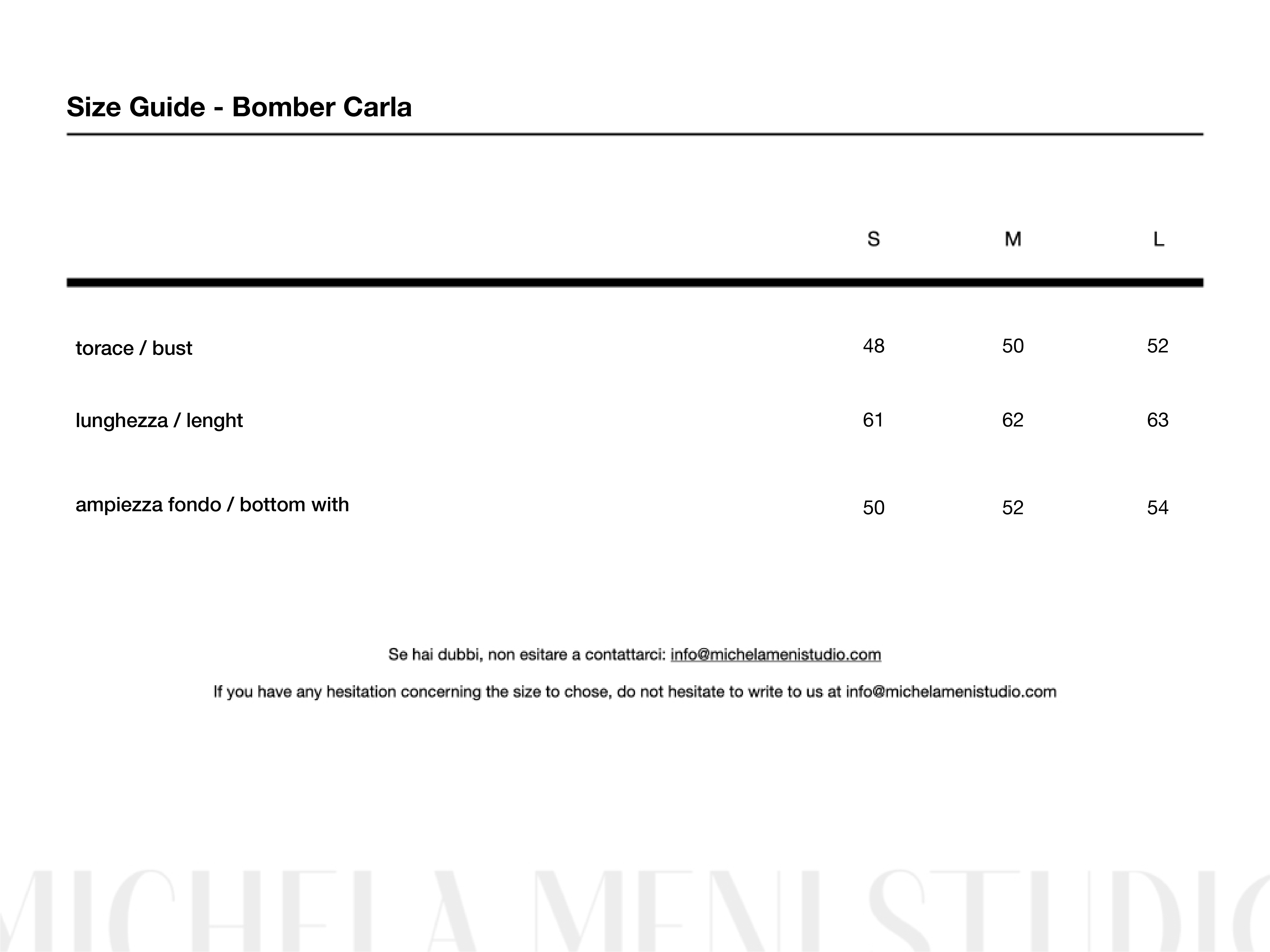 Prima di perfezionare il tuo acquisto, confronta le tue misure con quelle riportate sulla tabella taglie. Se hai dubbi scrivici!