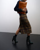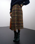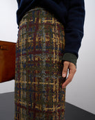 La gonna Anita è una classica gonna a matita, rigorosa nella linea e realizzata con un tessuto prezioso: un tweed in fantasia tartan multicolor.