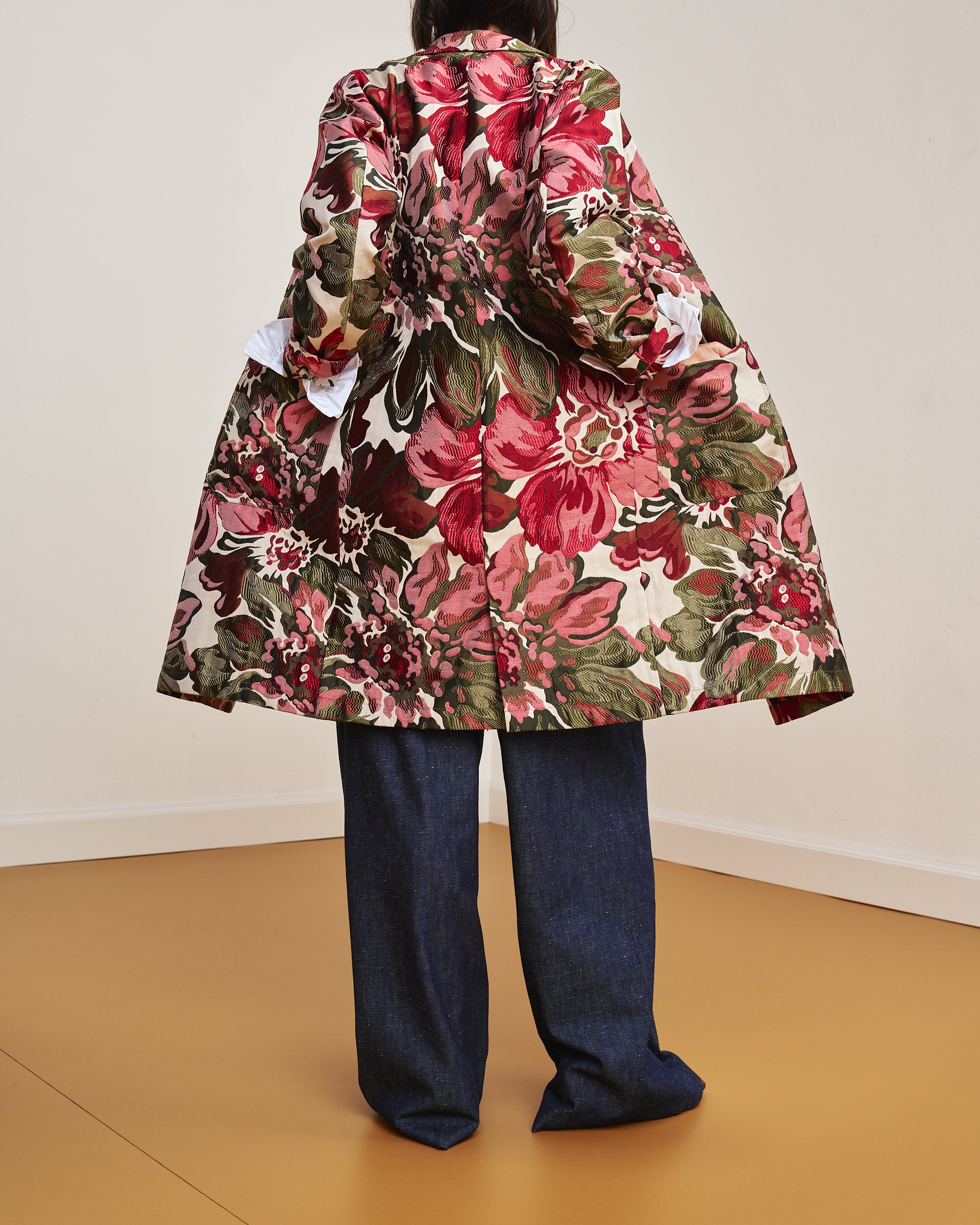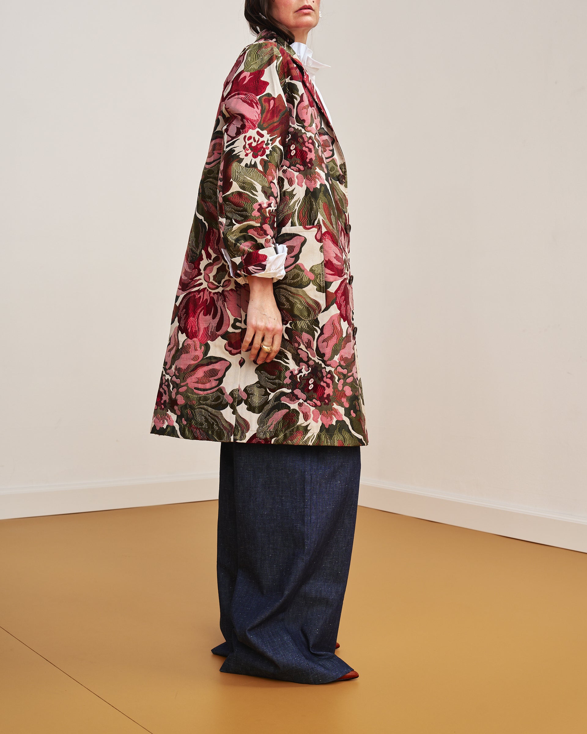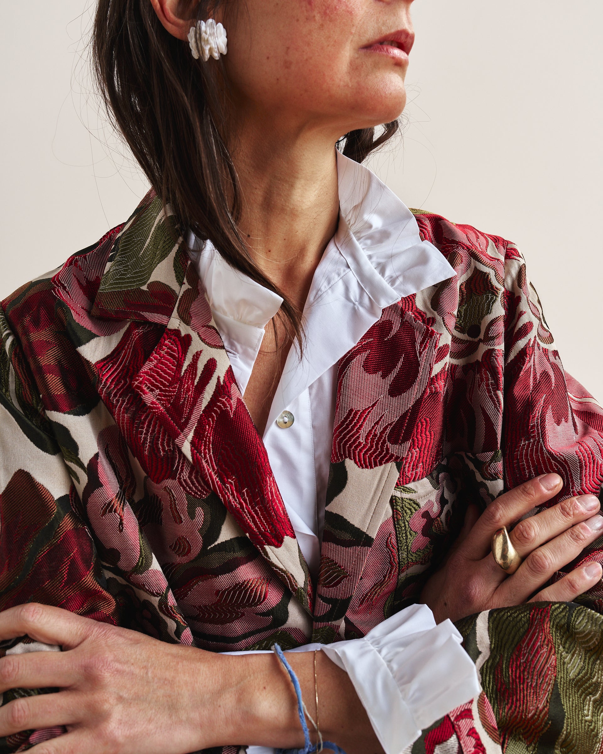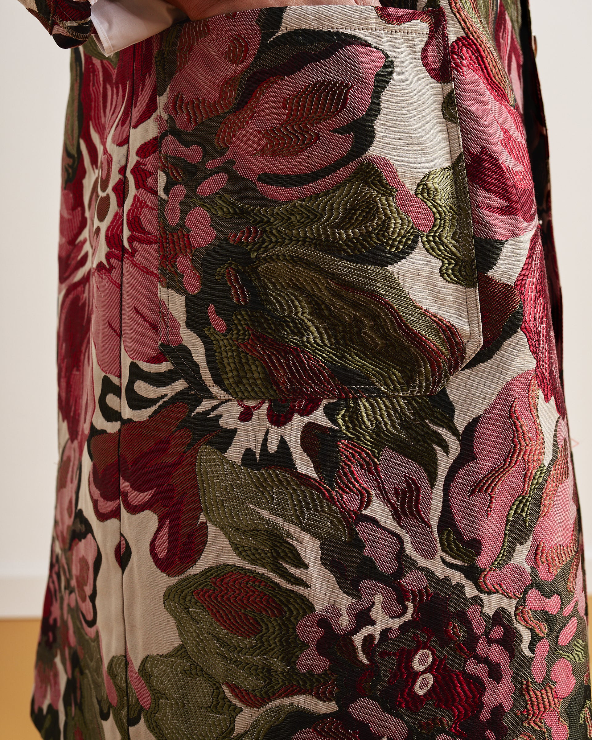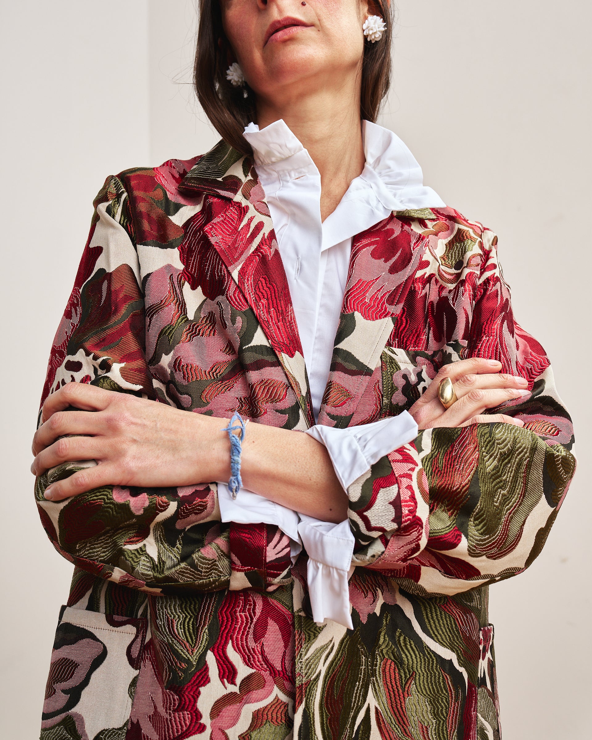 I tessuti utilizzati provengono da archivi tessili e rimanenze di alta qualità. Piccole irregolarità fanno parte del carattere del materiale e della sua storia.